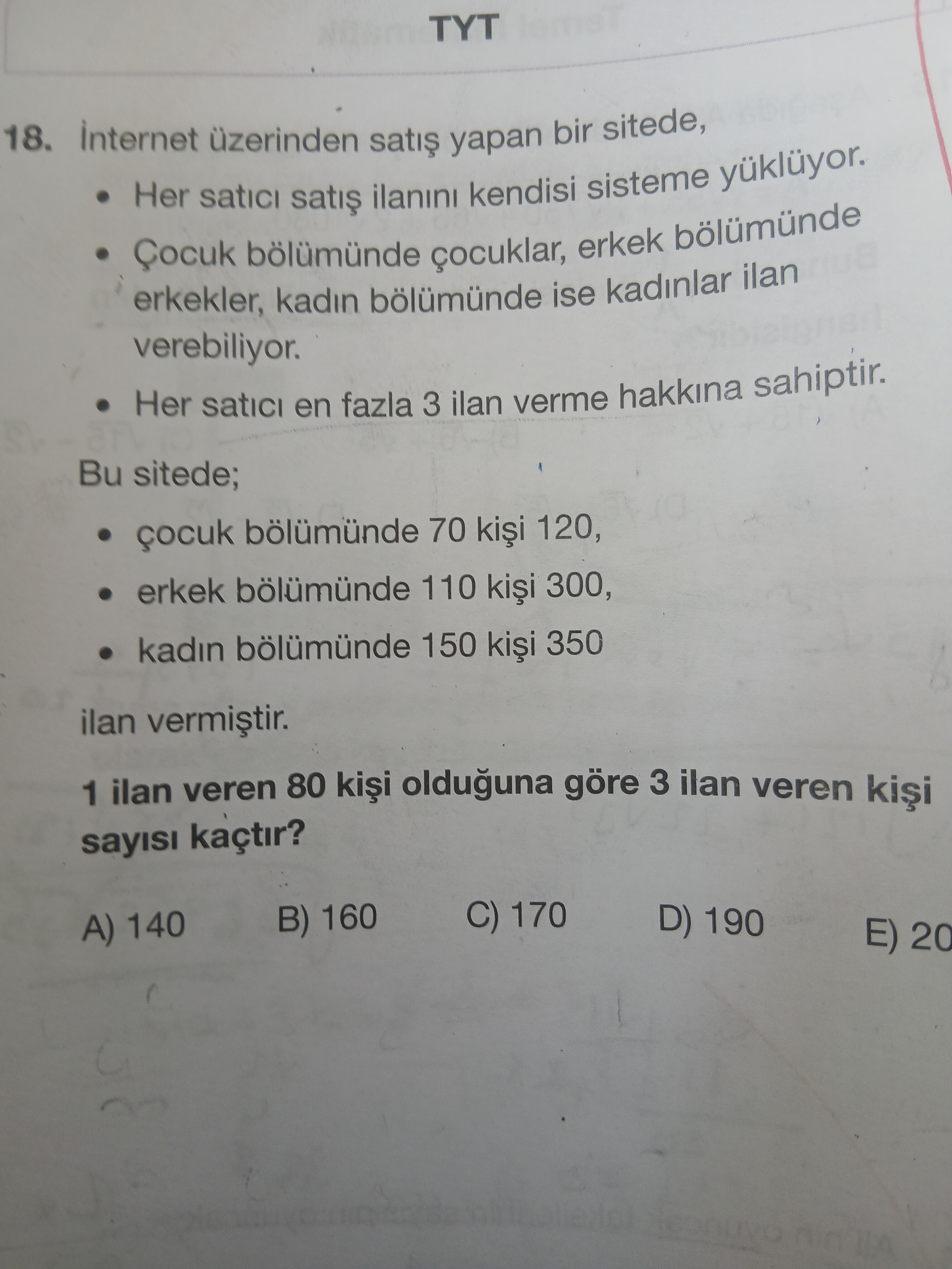 1 ilan veren 80 kişi olduğuna göre, 3 ilan veren kişi sayısı 190 çıkar.