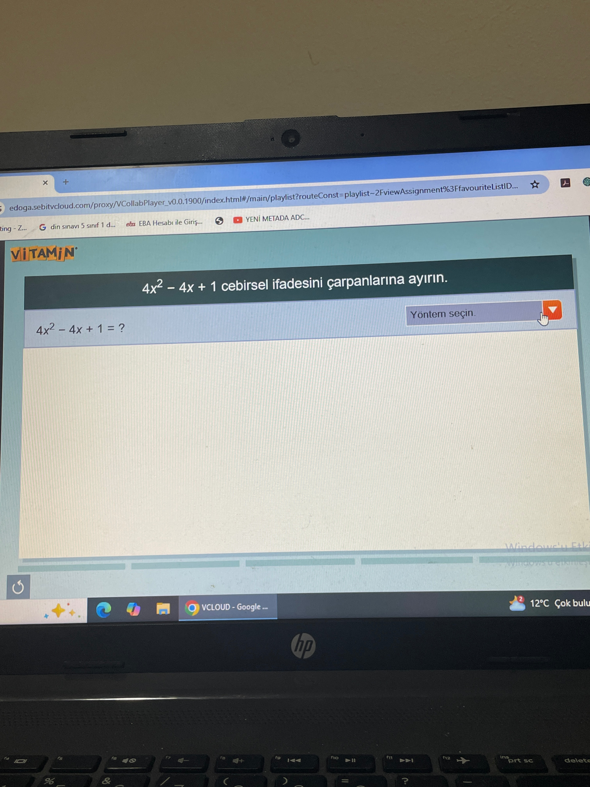 4x^2 − 4x + 1 cebirsel ifadesini çarpanlarına ayırın.