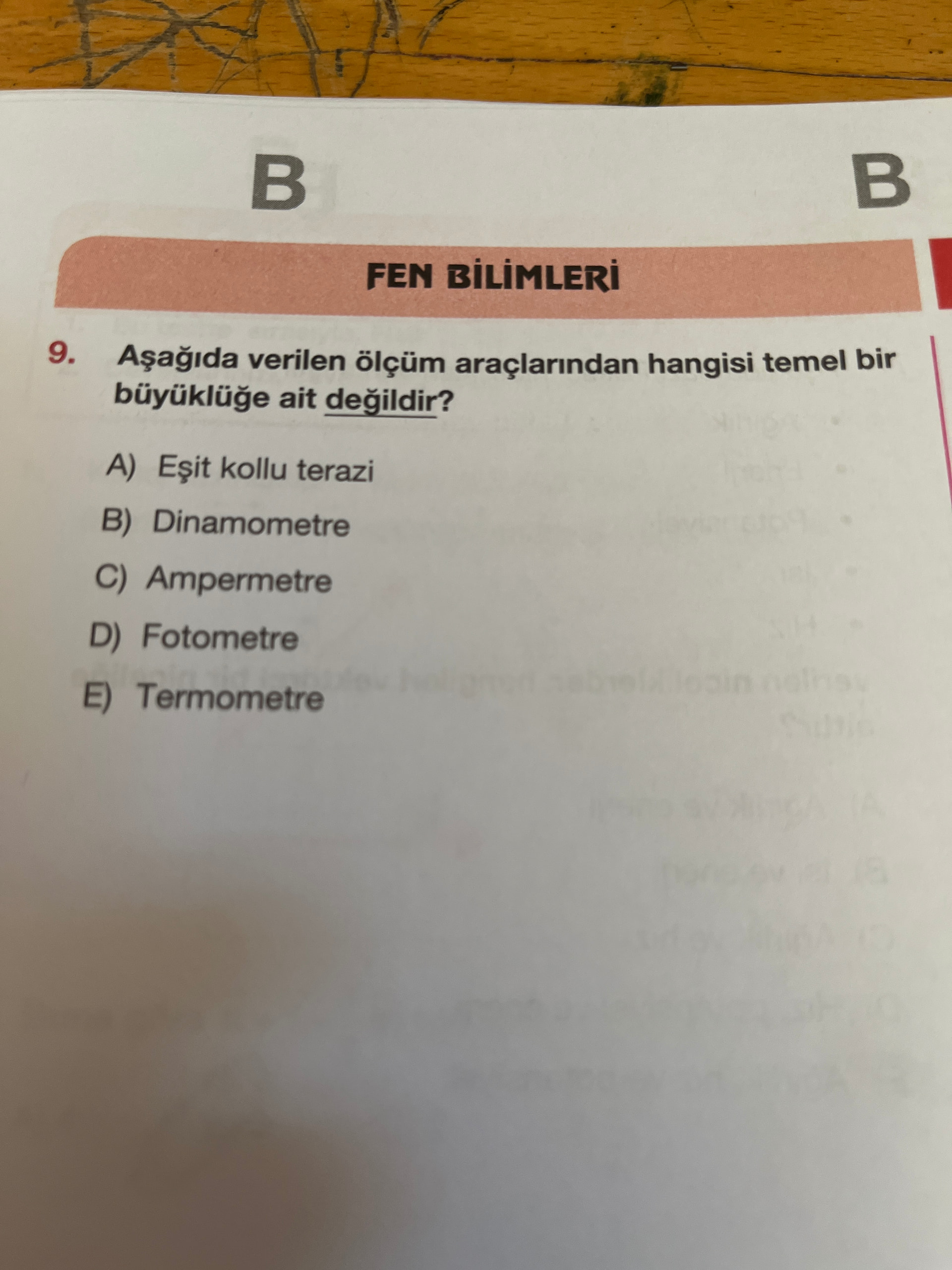 - Aşağıda verilen ölçüm araçlarından hangisi temel bir büyüklüğe ait değildir?
