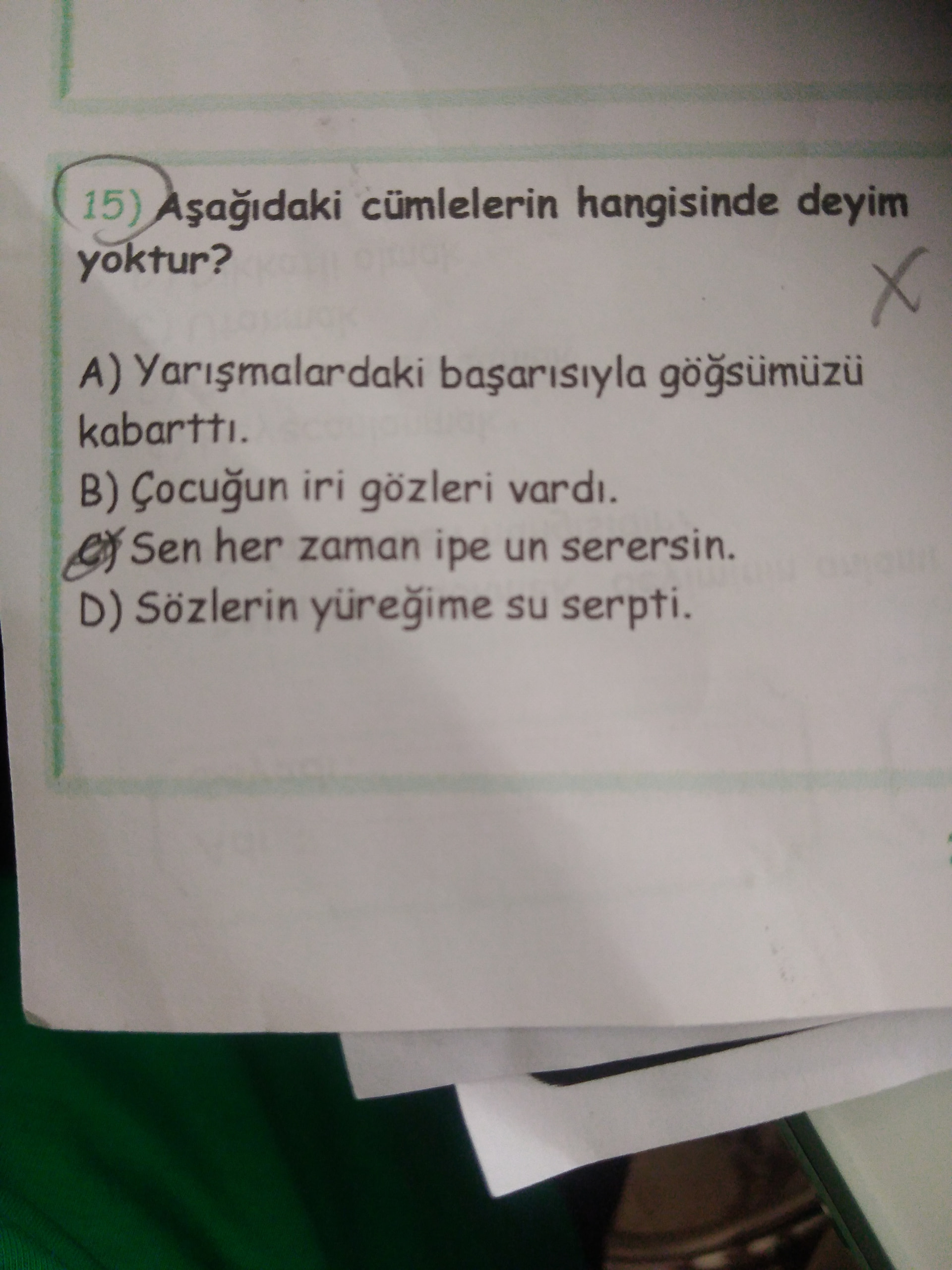 - Aşağıdaki cümlelerin hangisinde deyim yoktur?