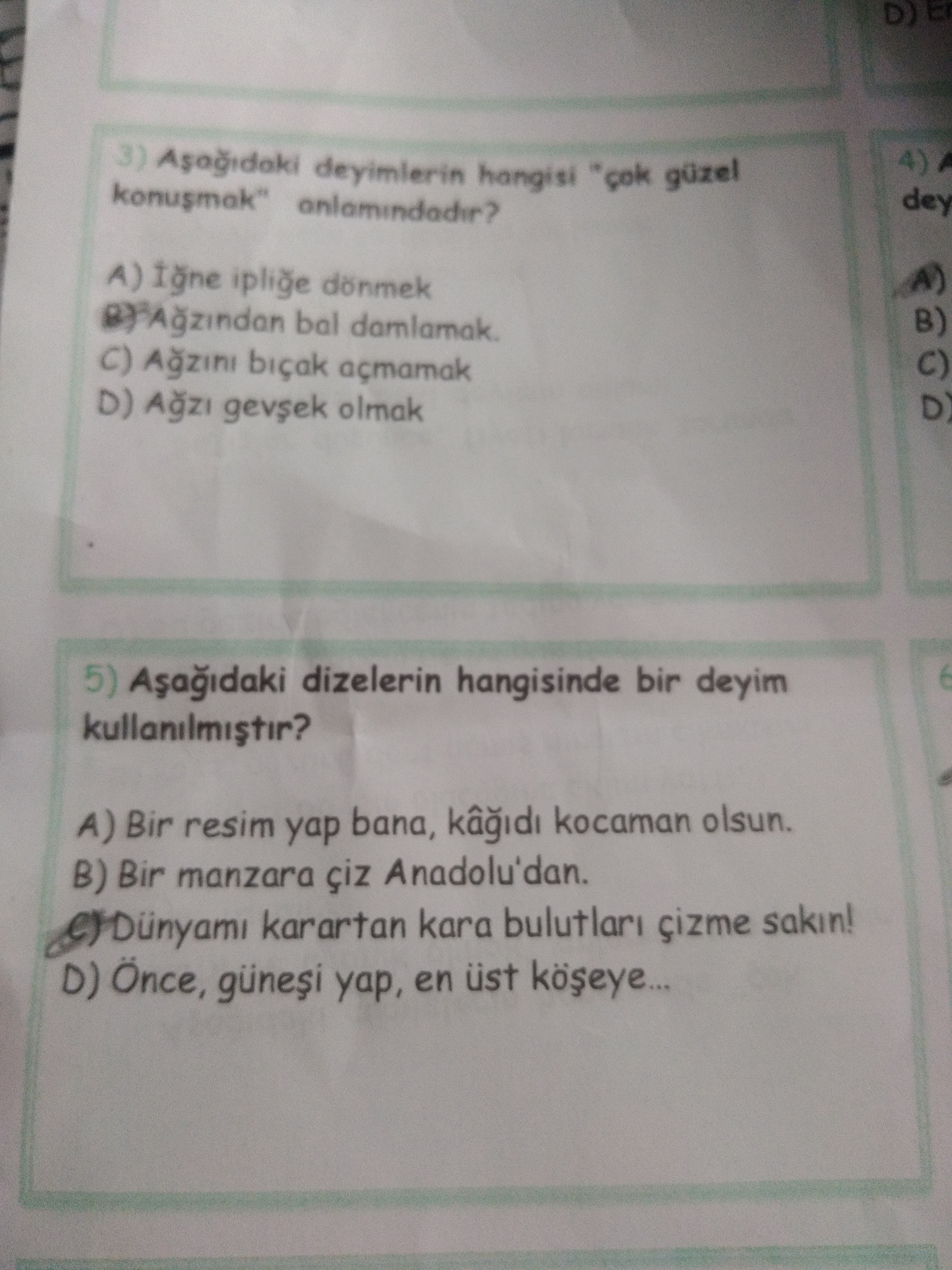 “3) Aşağıdaki deyimlerin hangisi ‘çok güzel konuşmak’ anlamındadır?”