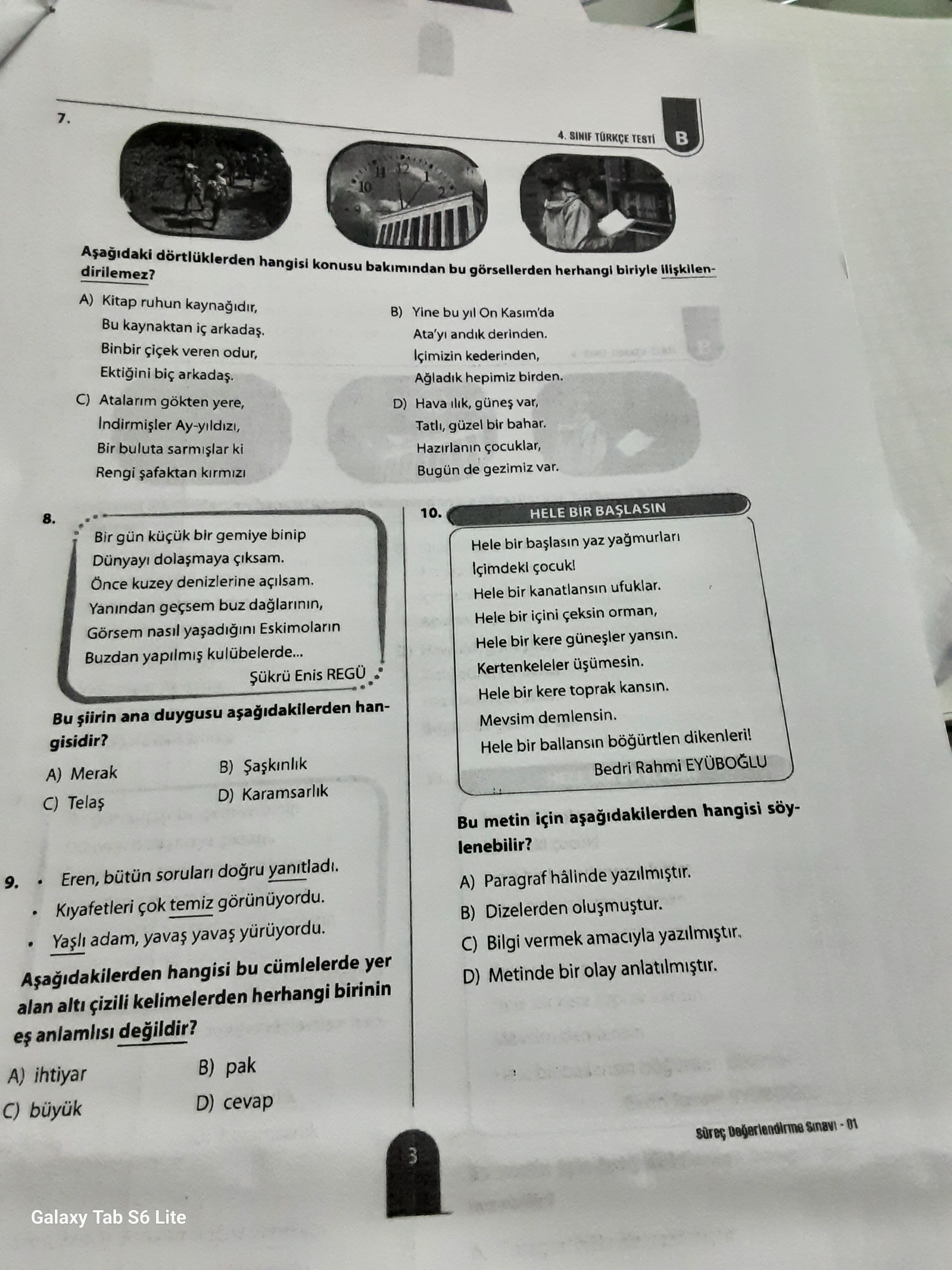 SINIF TÜRKÇE TESTİ B