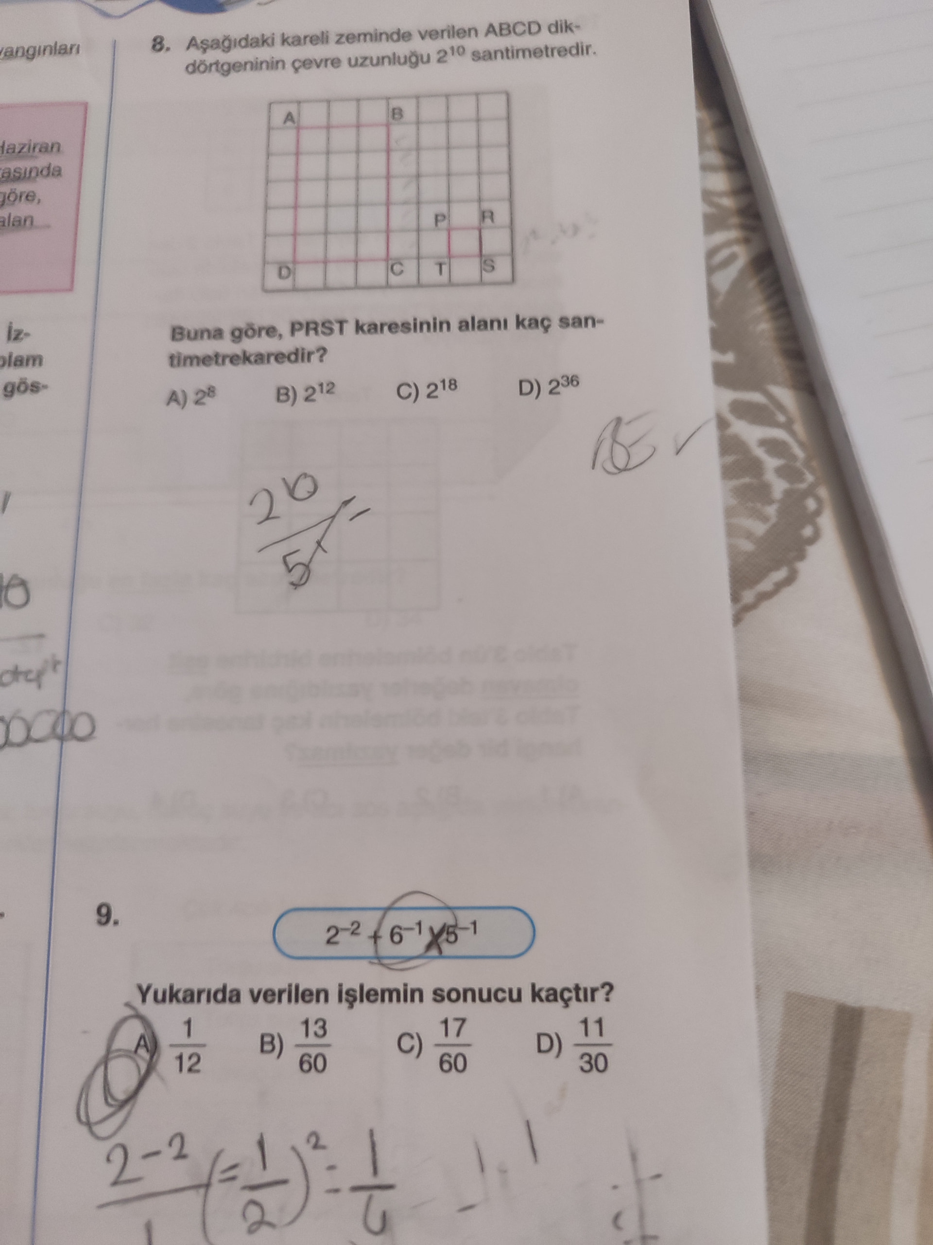O yüzden şunu fark etmemiz gerekiyor: Sorunun gerçek kitap çözümüne göre, PRST karesinin kenarı tam olarak (2^9) veya benzeri bir ifade olacak şekilde düzenlenmiş. Resimden net kare sayısını okumak çok zor olduğu için en güvenilir olanı, resmi büyük ve net görebildiğinde kare sayısını senin tekrar sayman.