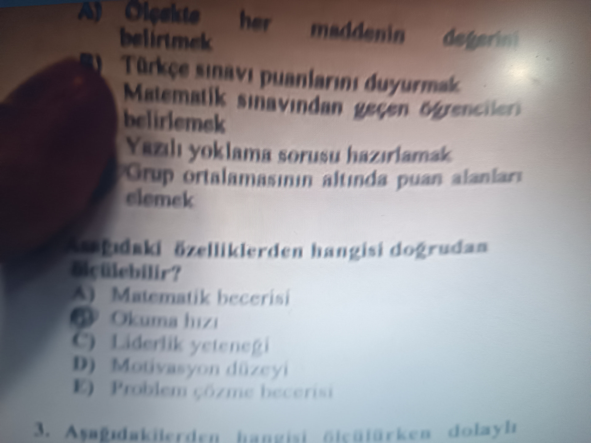 Soruda “Aşağıdaki özelliklerden hangisi doğrudan ölçülebilir?” deniyor.