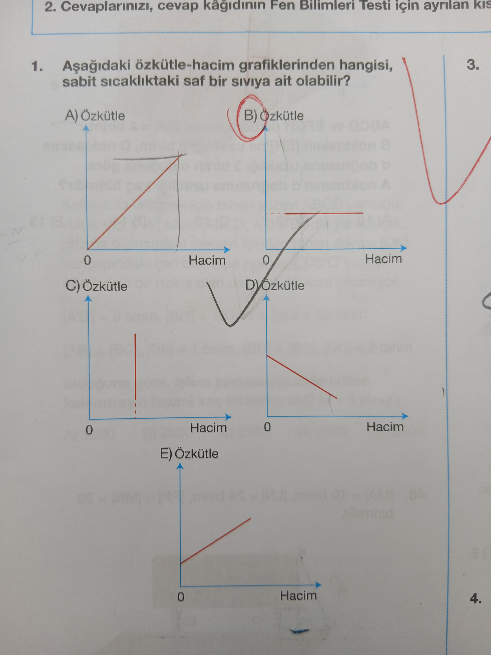 - A: doğrusal artış/azalış gösteriyorsa yine yanlış; aynı madde için yoğunluğun sabit olması gerekir.