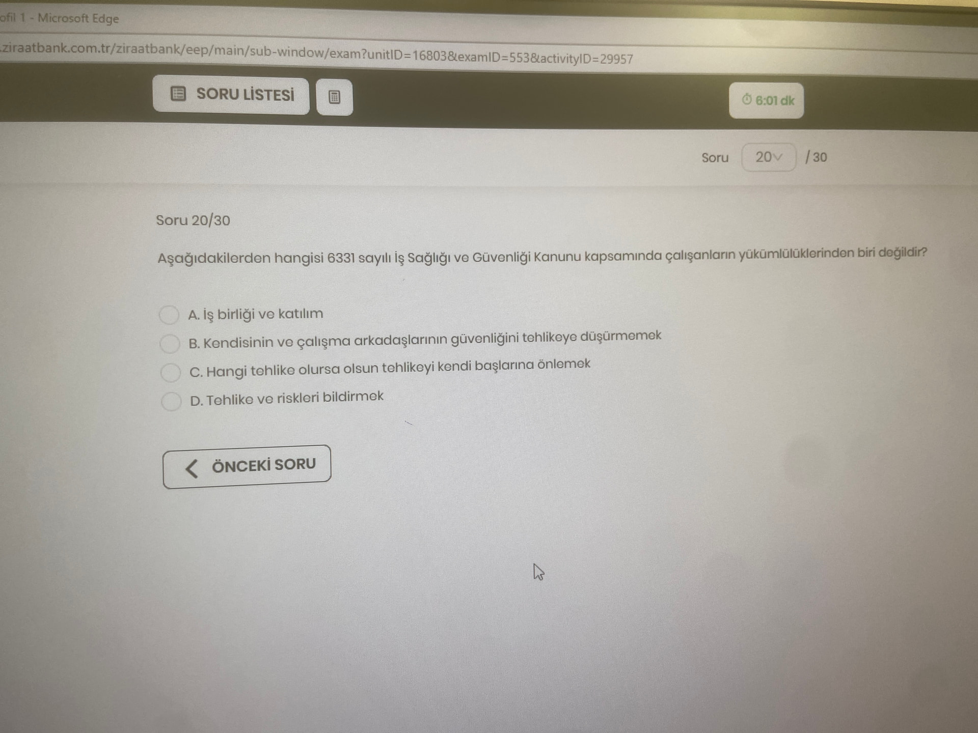 Bu yüzden C şıkkı, kanunda çalışan yükümlülüğü olarak sayılmayan ifadedir.