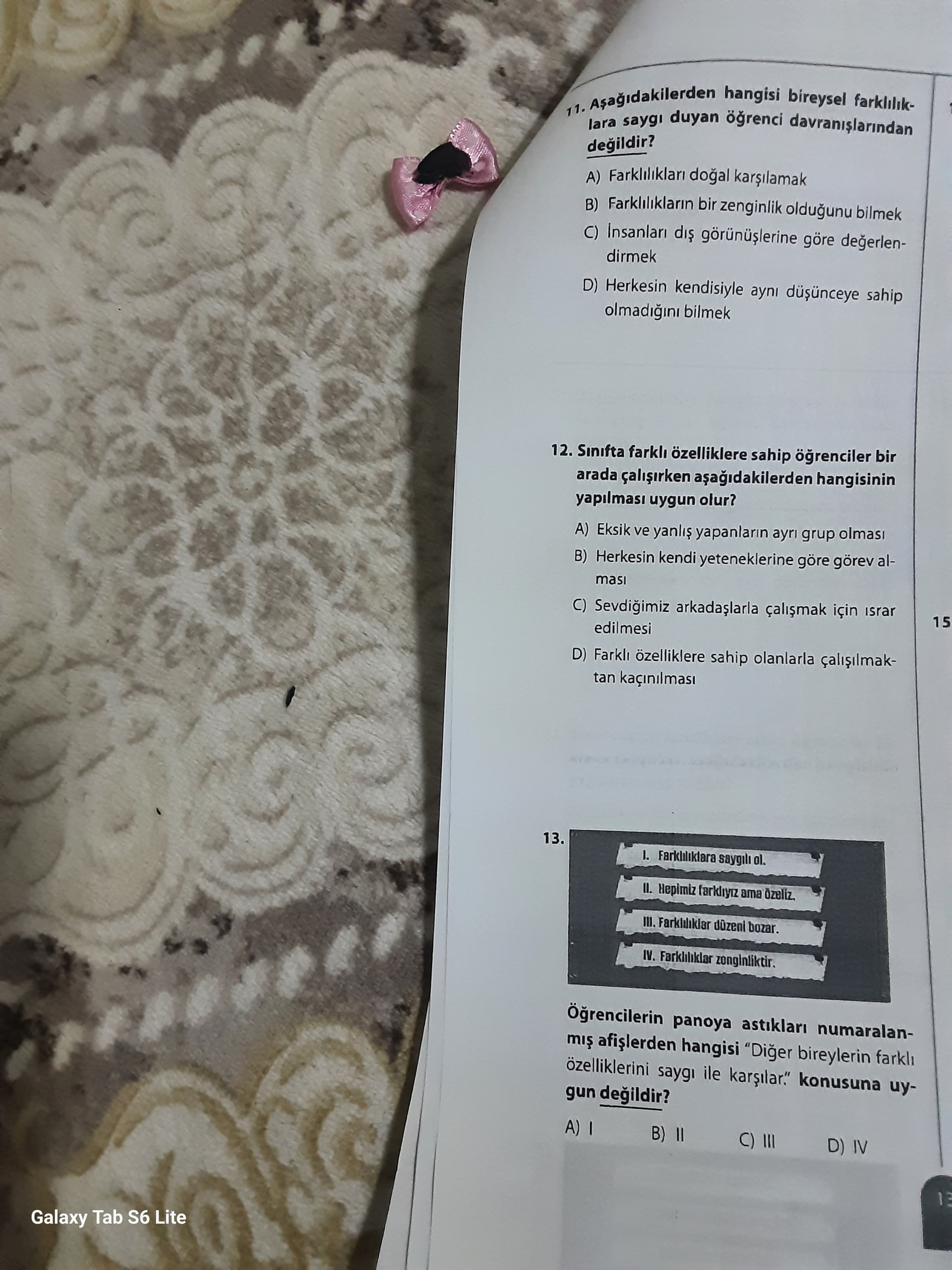 Aşağıdakilerden hangisi bireysel farklılıklara saygı duyan öğrenci davranışlarından değildir?