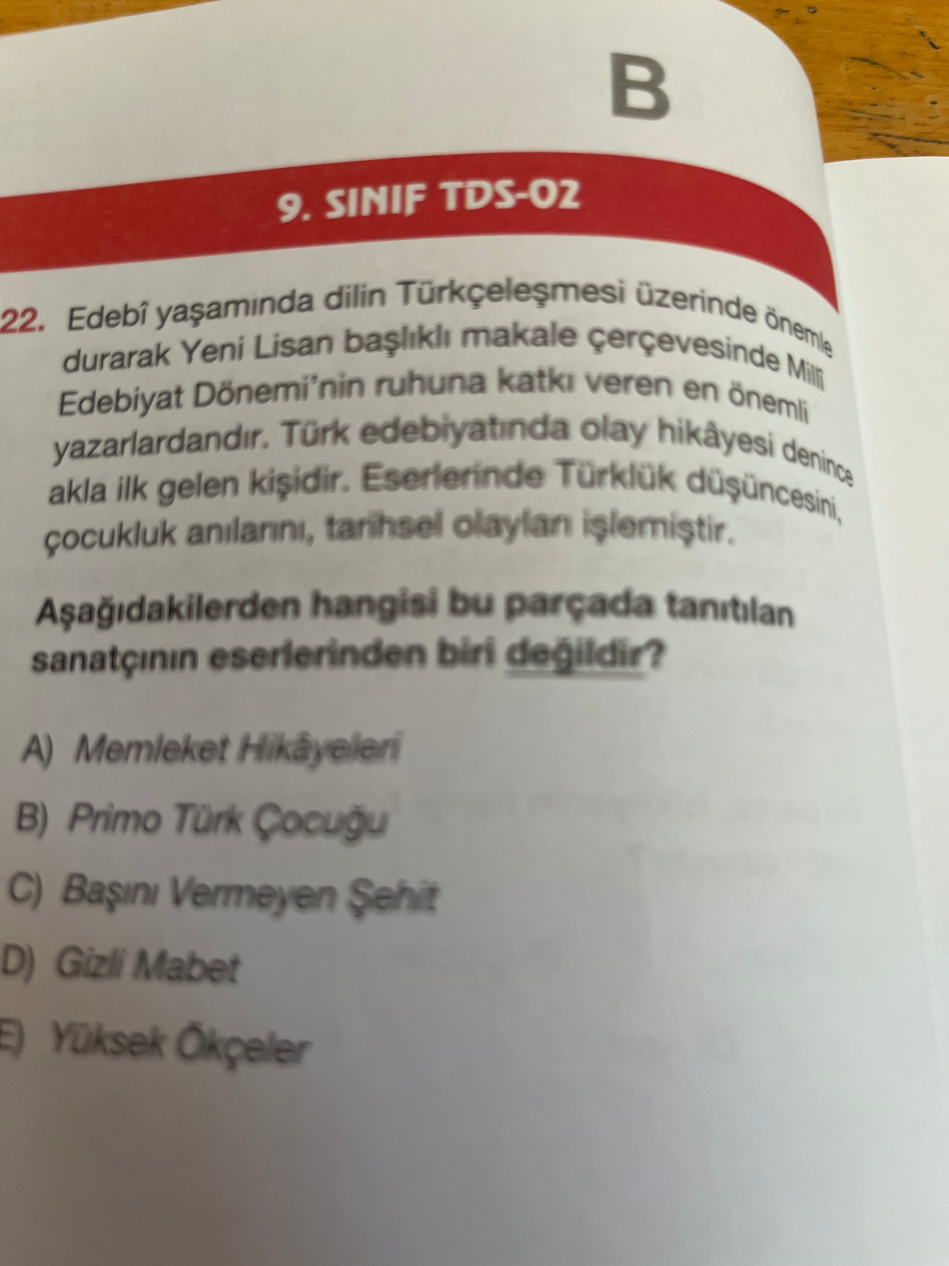 - A → Ömer Seyfettin’e değil, Refik Halit Karay’a ait.