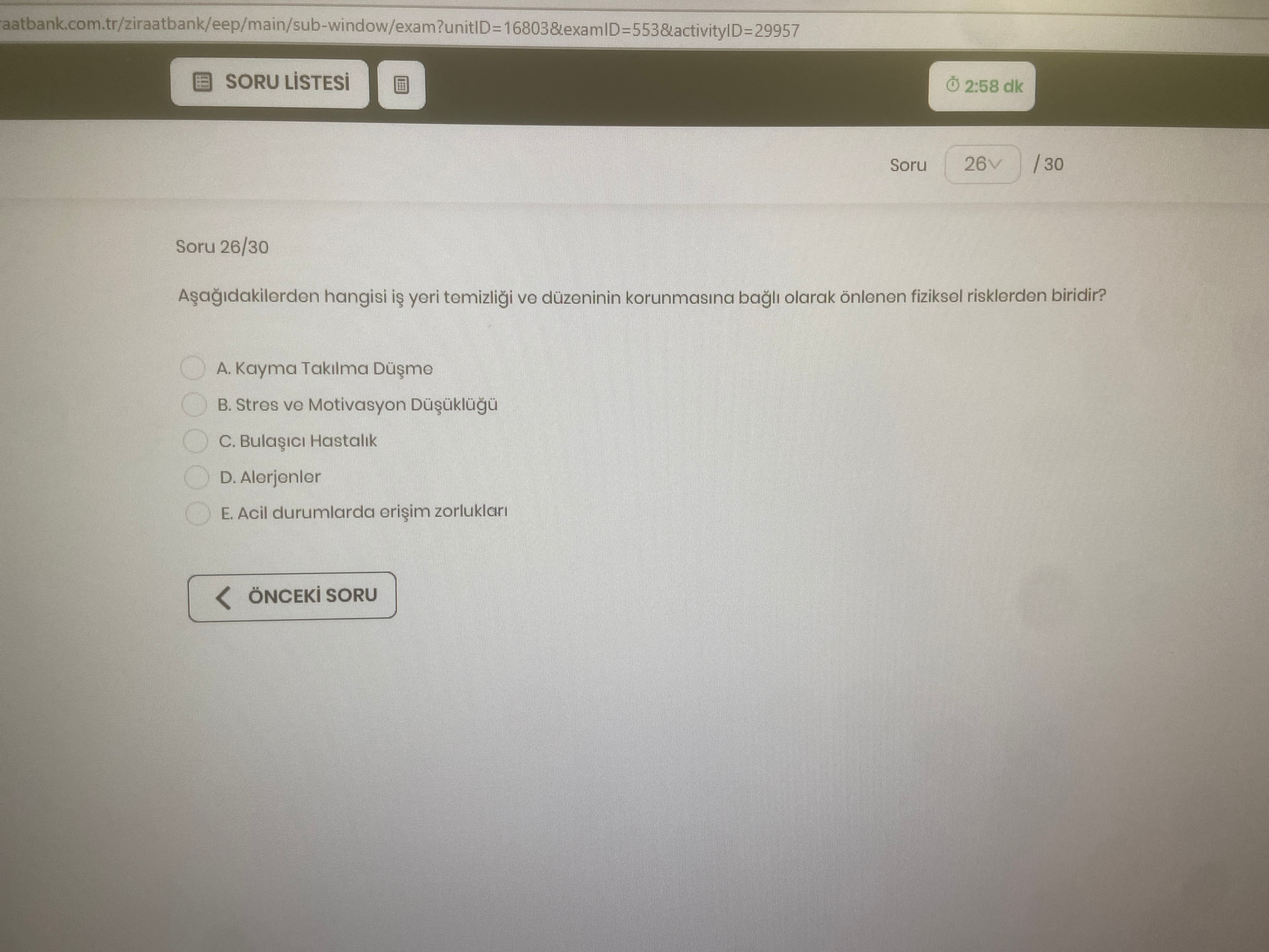 Doğru cevap: A şıkkı – Kayma Takılma Düşme