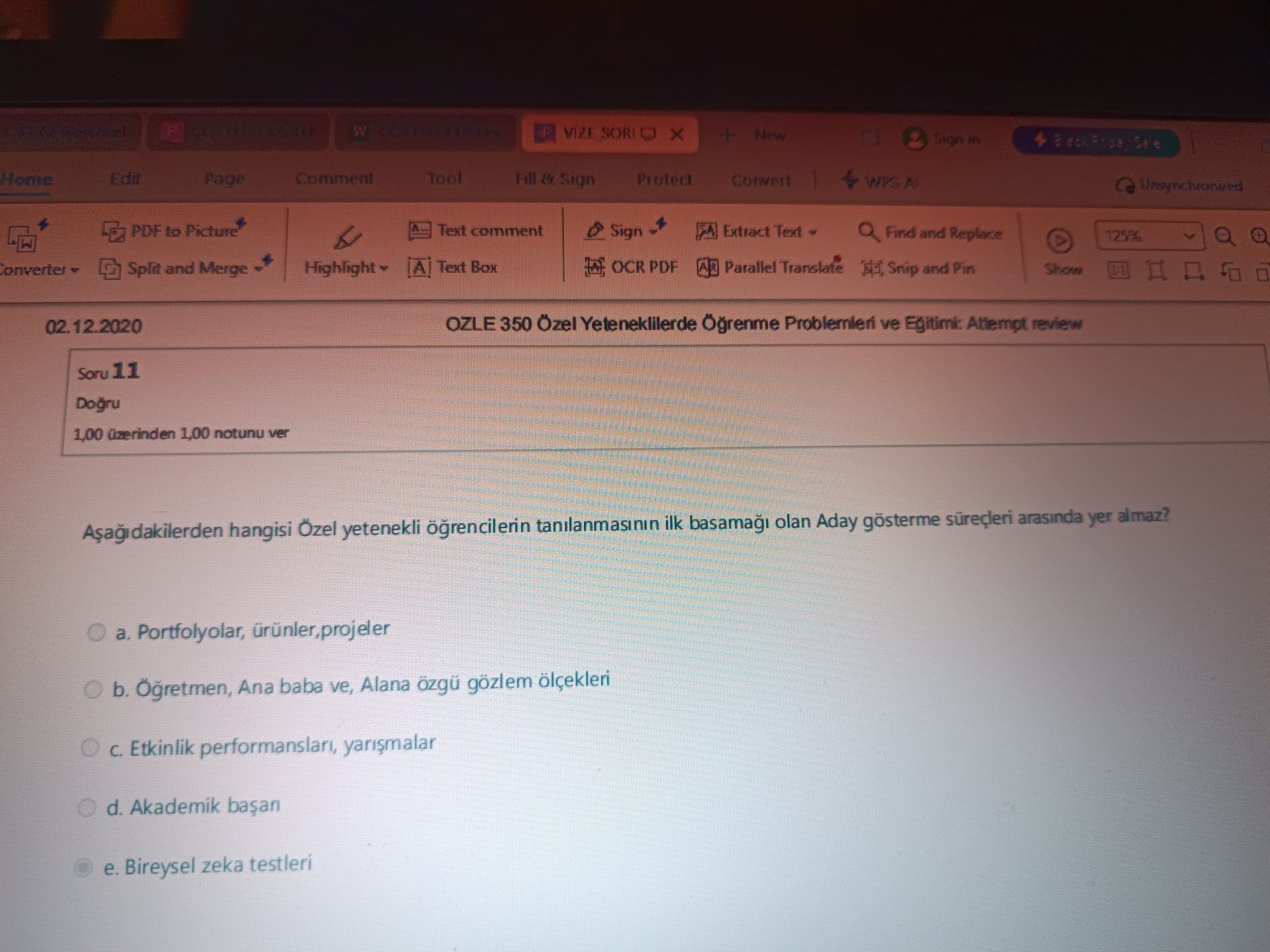 e. Bireysel zeka testleri