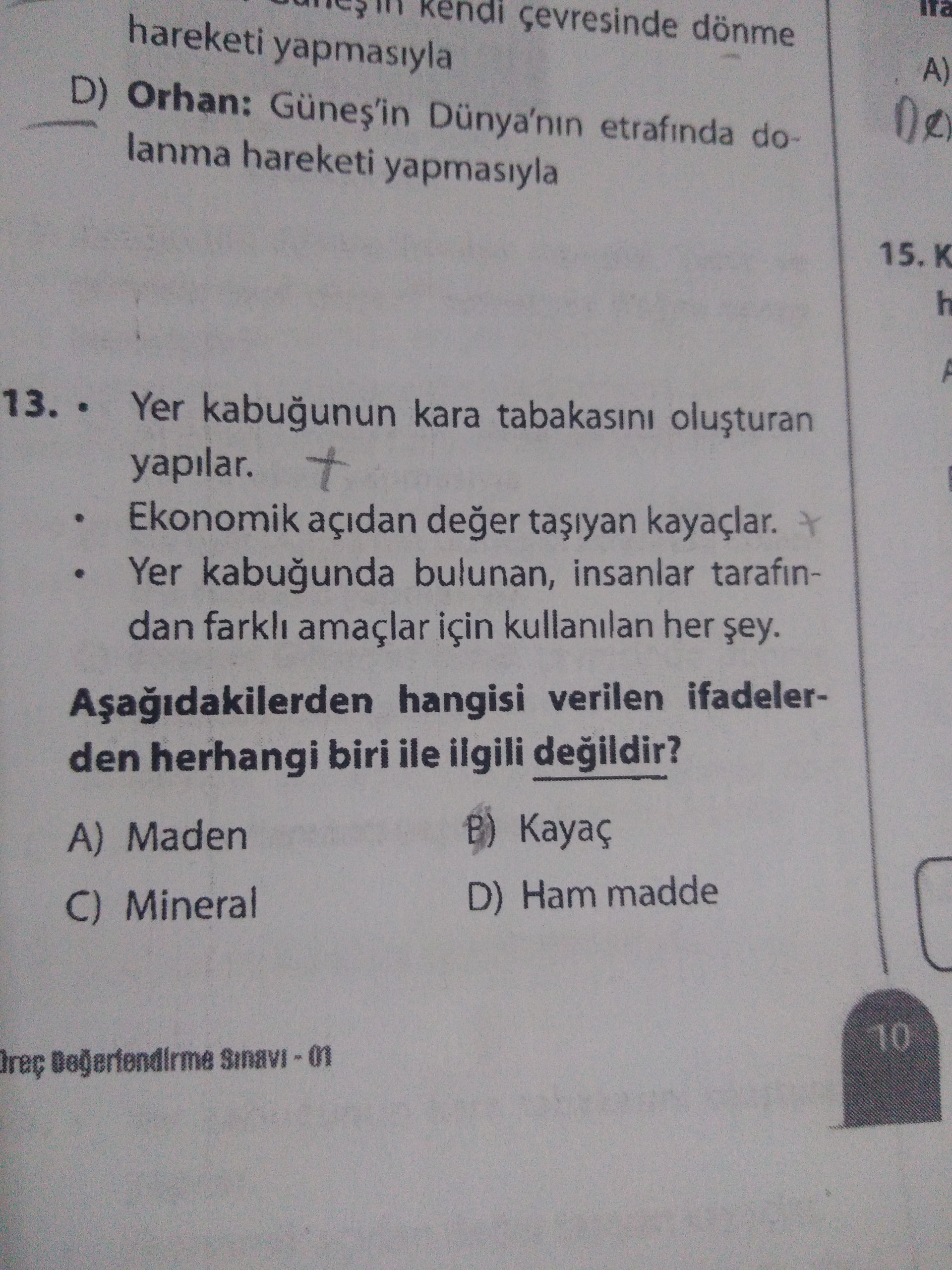 - A) Maden: Ekonomik değer taşır, yer kabuğunda bulunur.