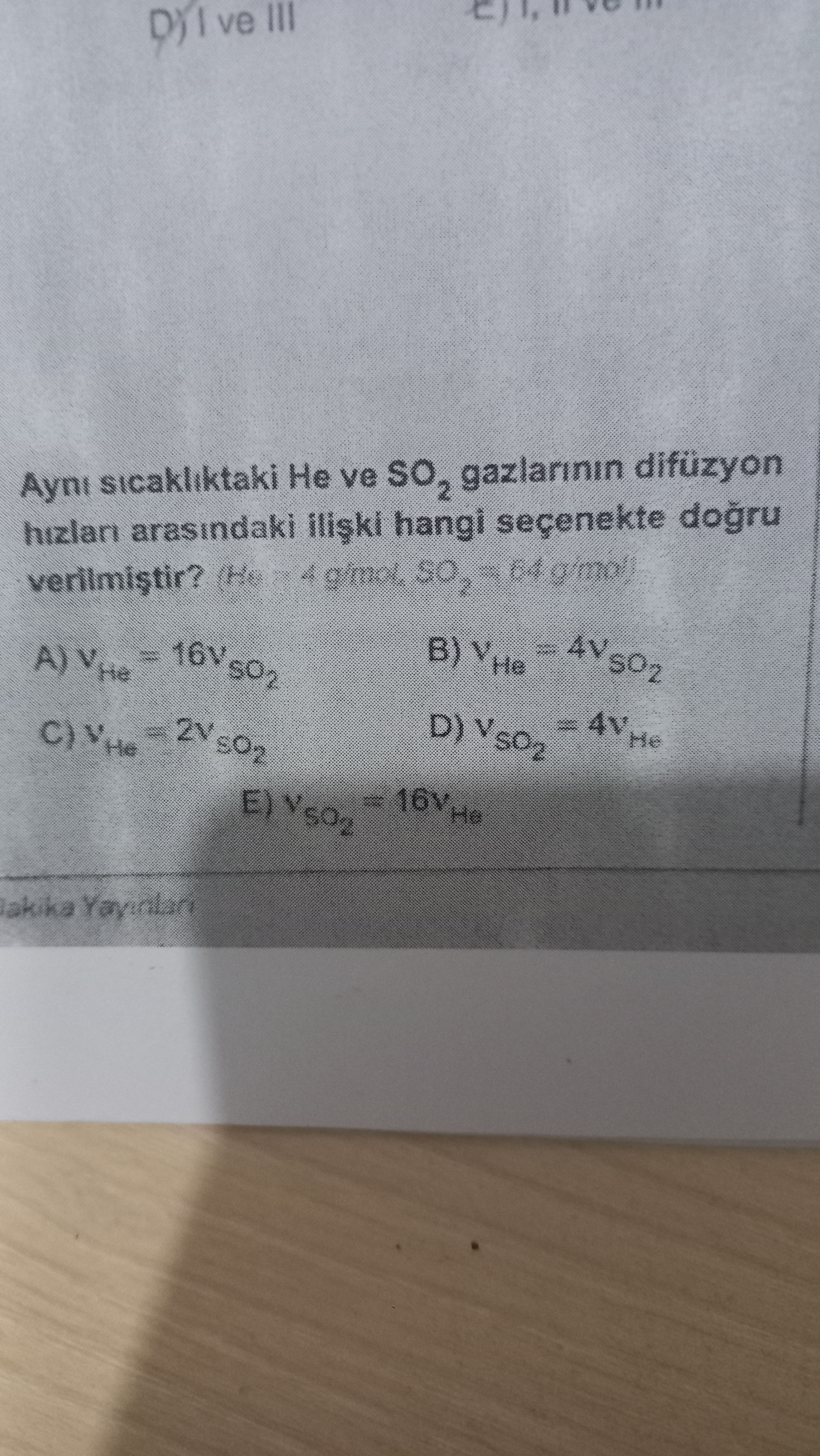 Doğru cevap: A seçeneği → V_{He} = 16 V_{SO_2}