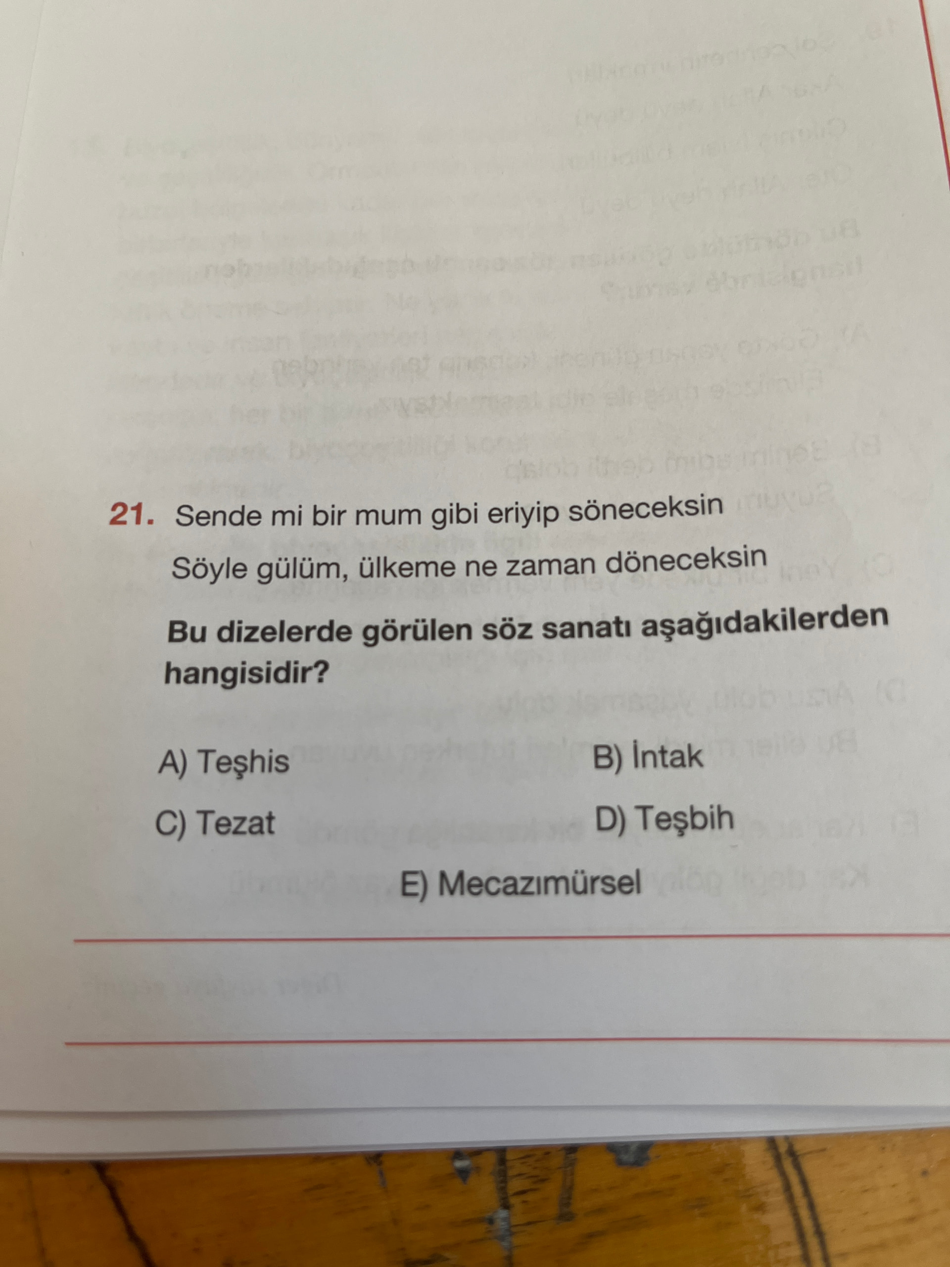 Doğru cevap: D) Teşbih
