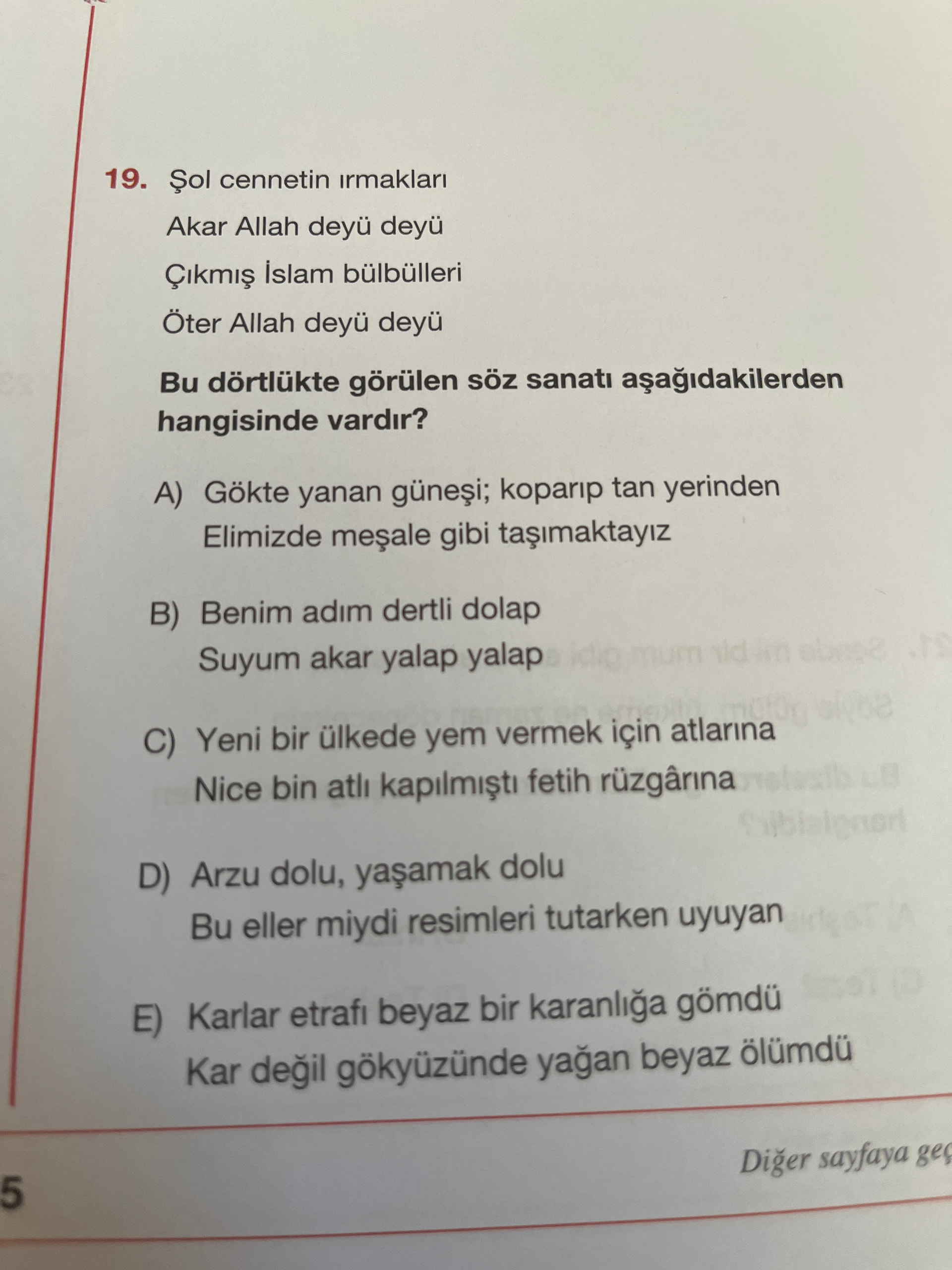 - E) “Beyaz ölüm” → mecaz / istiare yönü baskın.