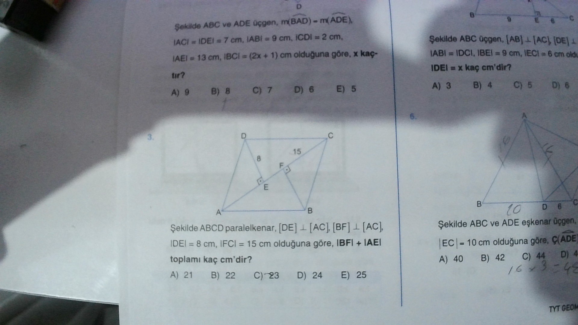 Şekilde ABC ve ADE üçgen, m(BAD) = m(ADE),