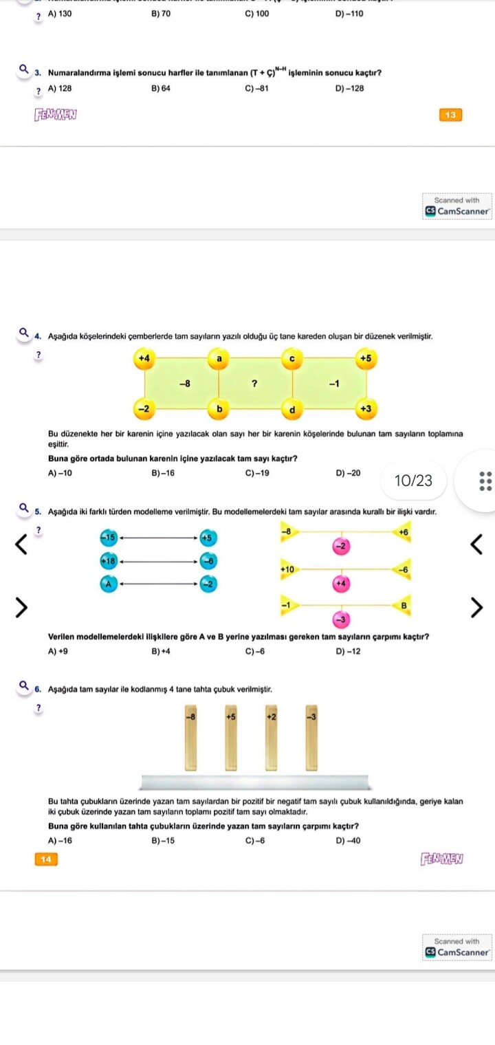 -2 (b) (d) +3Bu düzenekte her bir karenin içine yazılacak olan sayı her bir karenin köşelerinde bulunan tam sayıların toplamına eşittir. Buna göre ortada bulunan karenin içine yazılacak tam sayı kaçtır?