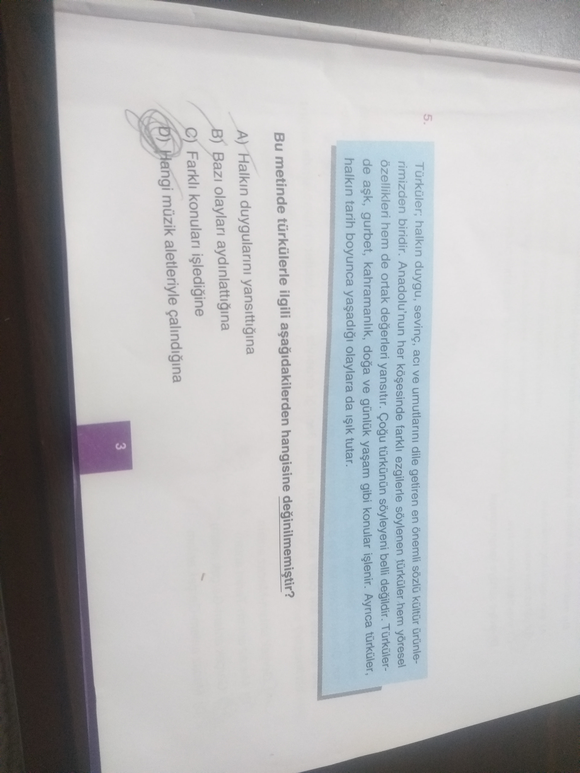 Bu metinde türkülerle ilgili aşağıdakilerden hangisine değinilmemiştir?