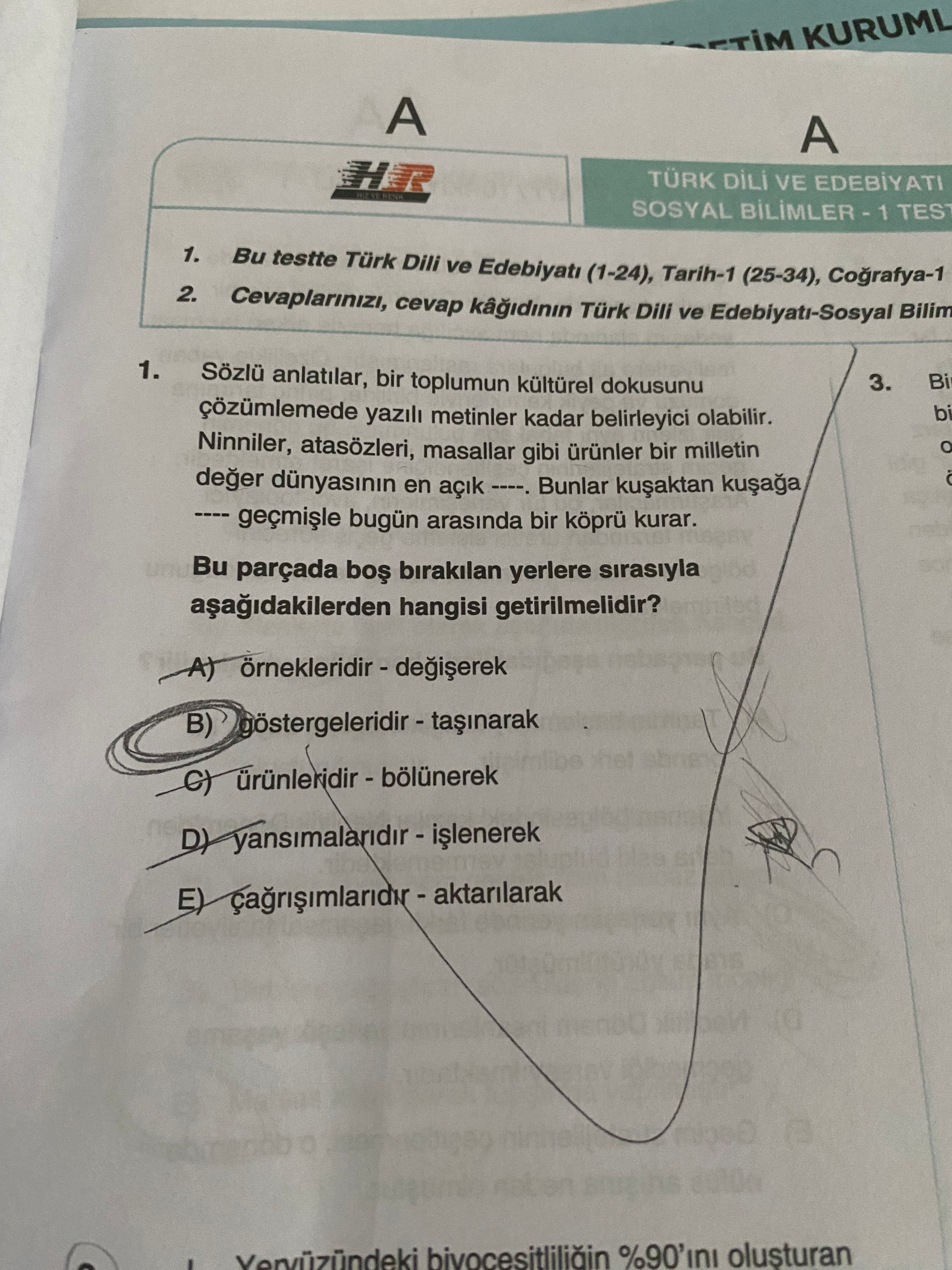 Cevaplarınızı, cevap kâğıdının Türk Dili ve Edebiyatı-Sosyal Bilimler-1 …