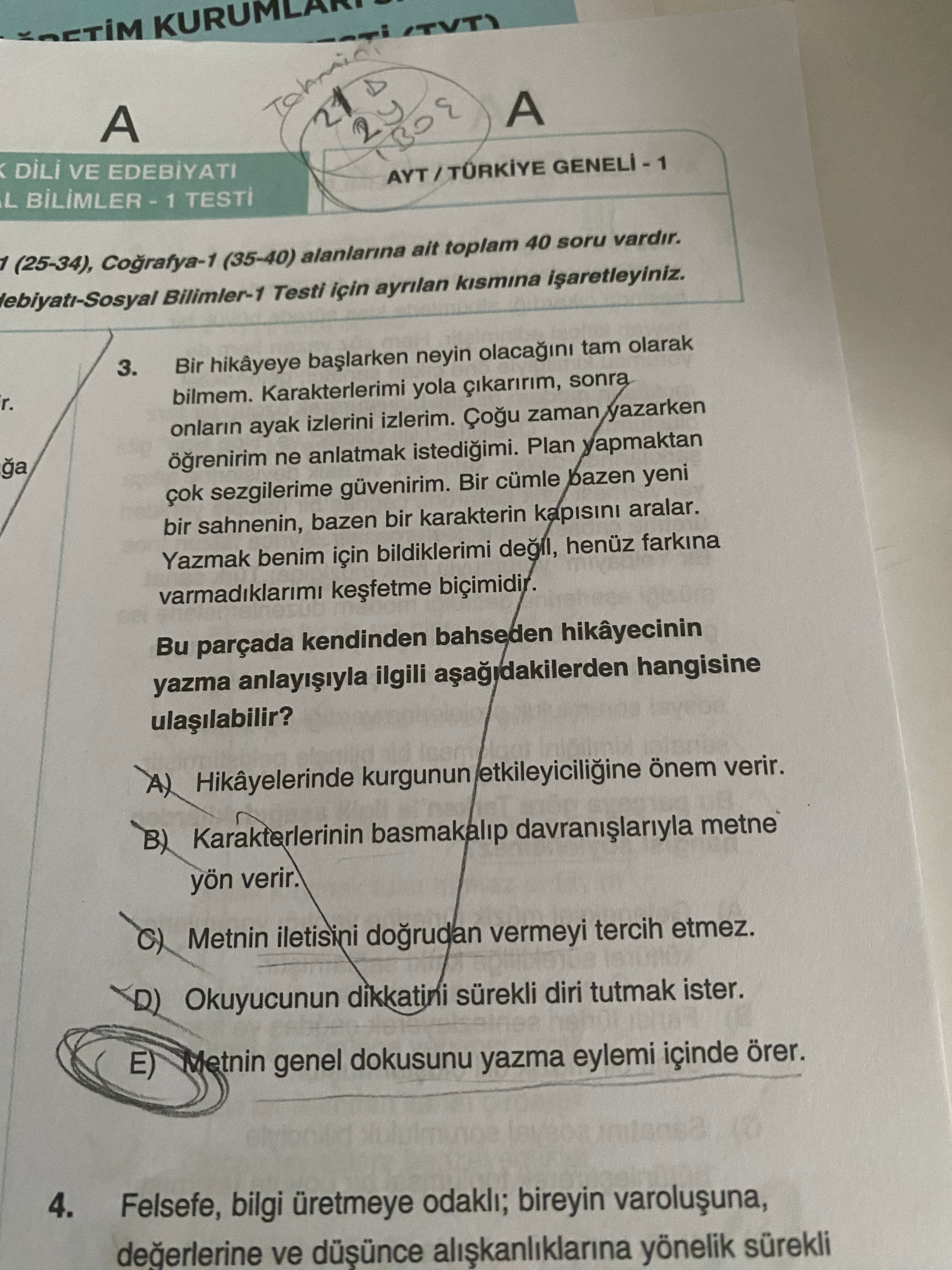 “Bu parçada kendinden bahseden hikâyecinin yazma anlayışıyla ilgili aşağıdakilerden hangisine ulaşılamaz?”
