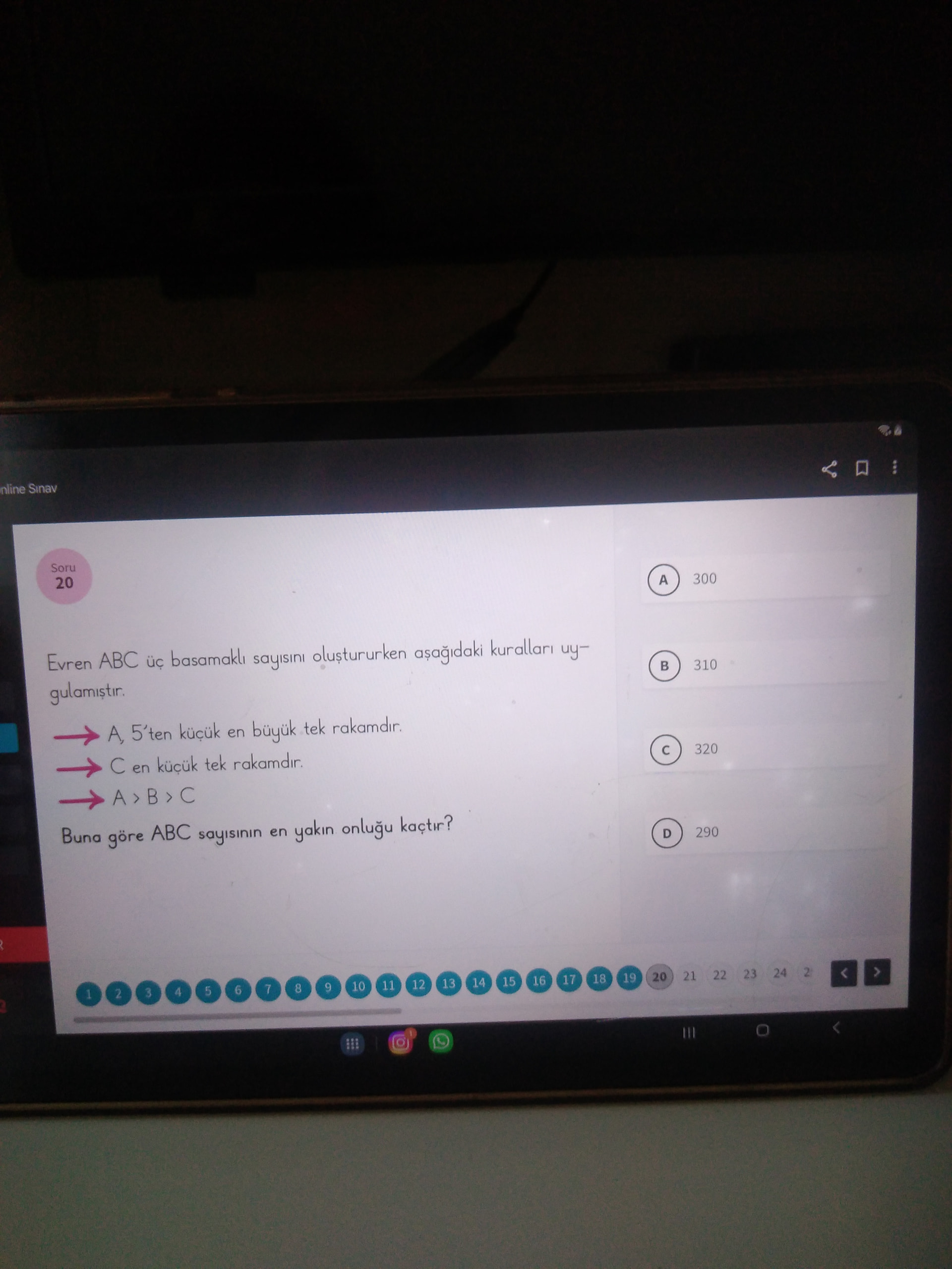 Buna göre ABC sayısının en yakın onluğu soruluyor; seçenekler: 300, 310, 320, 330, 290.