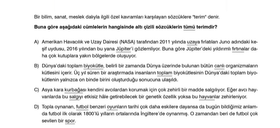 Buna göre aşağıdaki cümlelerin hangisinde altı çizili sözcüklerin tümü terimdir?