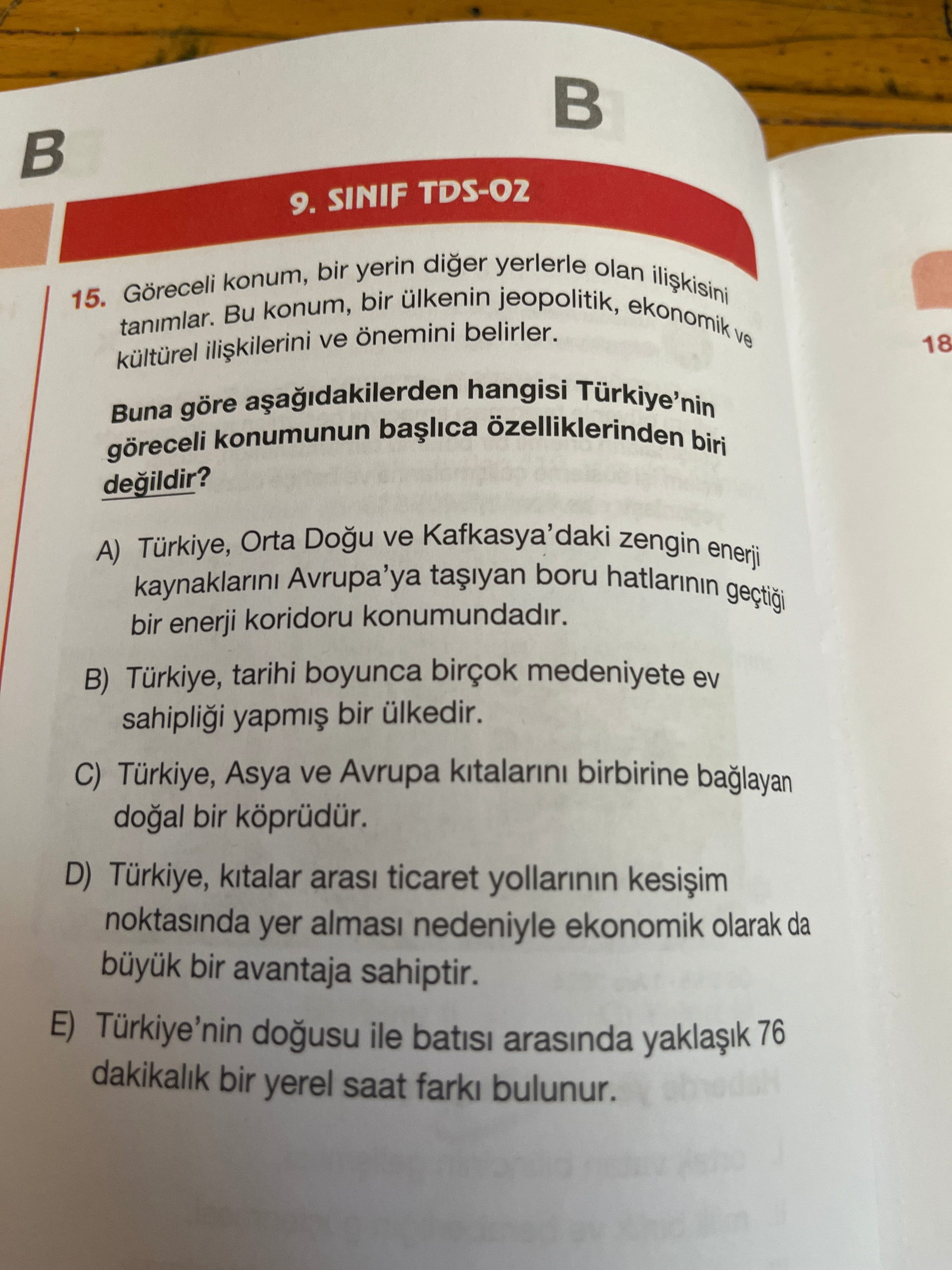 “Göreceli konum, bir yerin diğer yerlerle olan ilişkisini tanımlar… Buna göre aşağıdakilerden hangisi Türkiye’nin göreceli konumunun başlıca özelliklerinden biri değildir?”