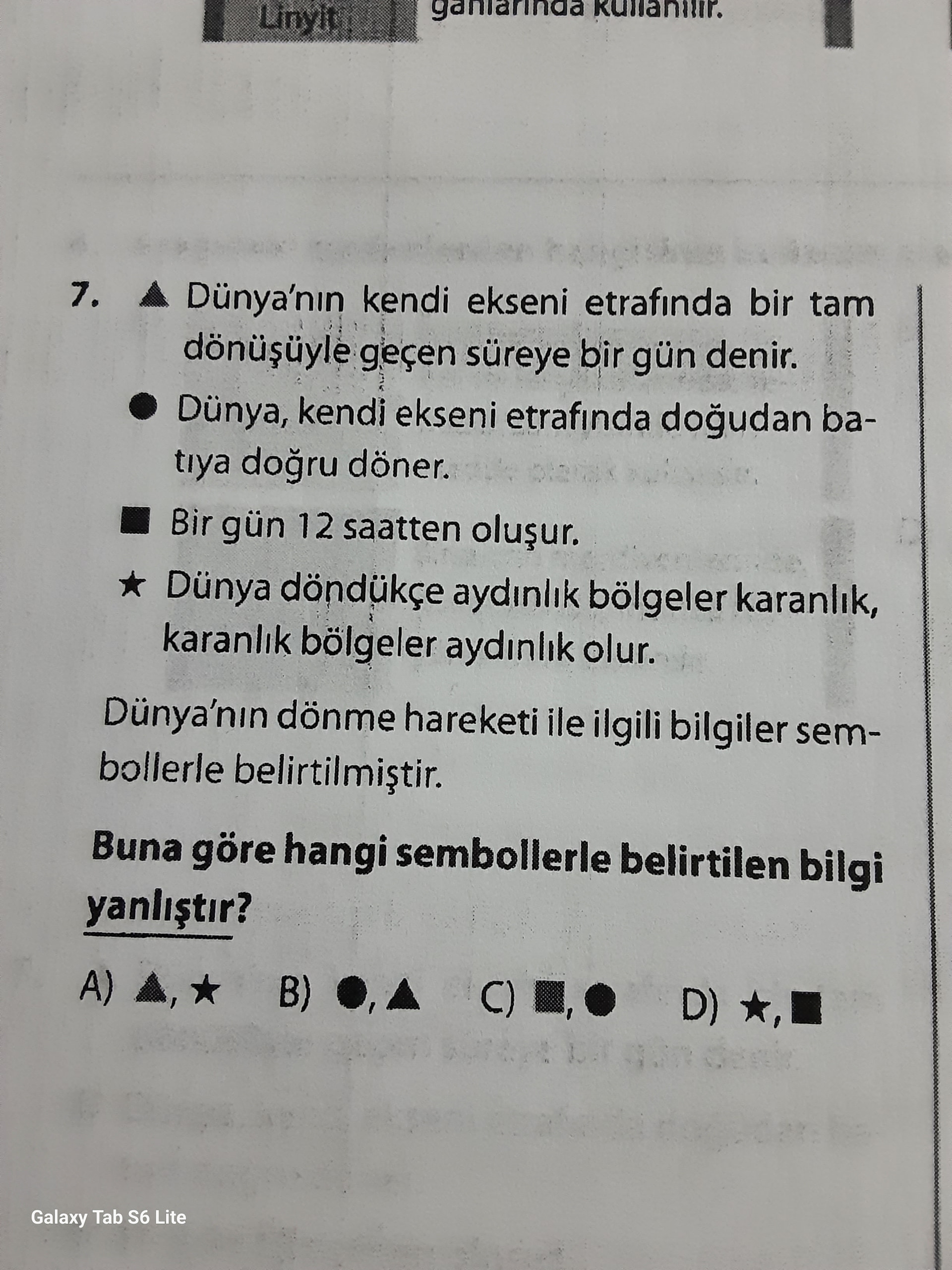 Yanlış olan bilgi ■ Bir gün 12 saatten oluşur. ifadesidir. Yani doğru seçenek: C) ■
