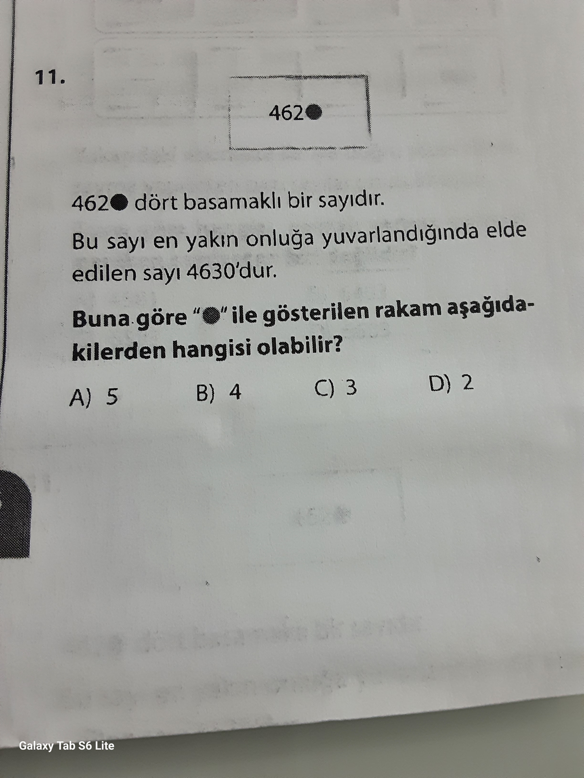 Yani _ (birler basamağı) 5 olursa, 4625 sayısı 4630’a yuvarlanır. Diğer seçeneklerde verildiği gibi 4, 3, 2 olursa 4630’a yuvarlanmaz, 4620’ye yuvarlanır.