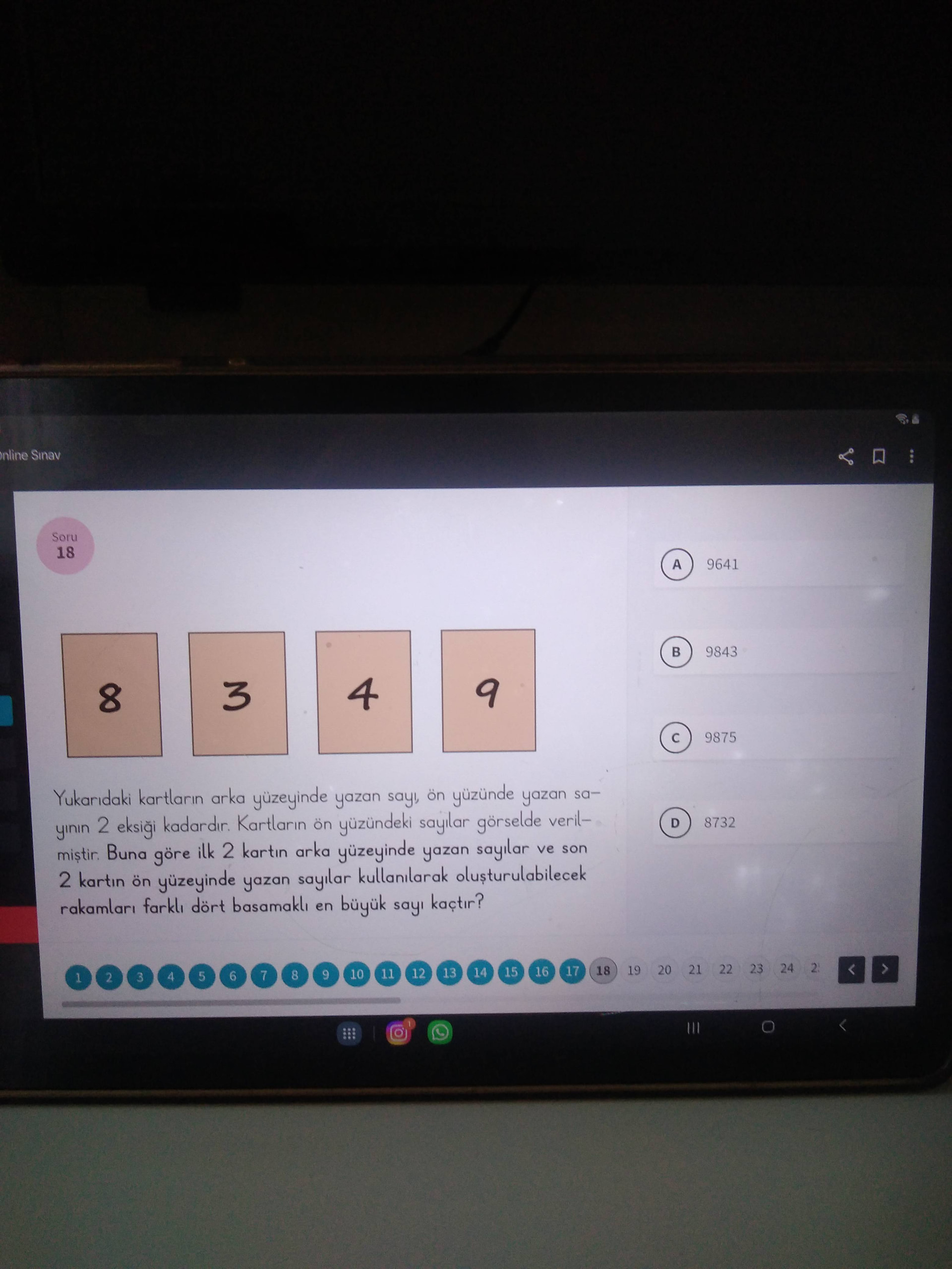 rakamları farklı dört basamaklı en büyük sayı soruluyor.