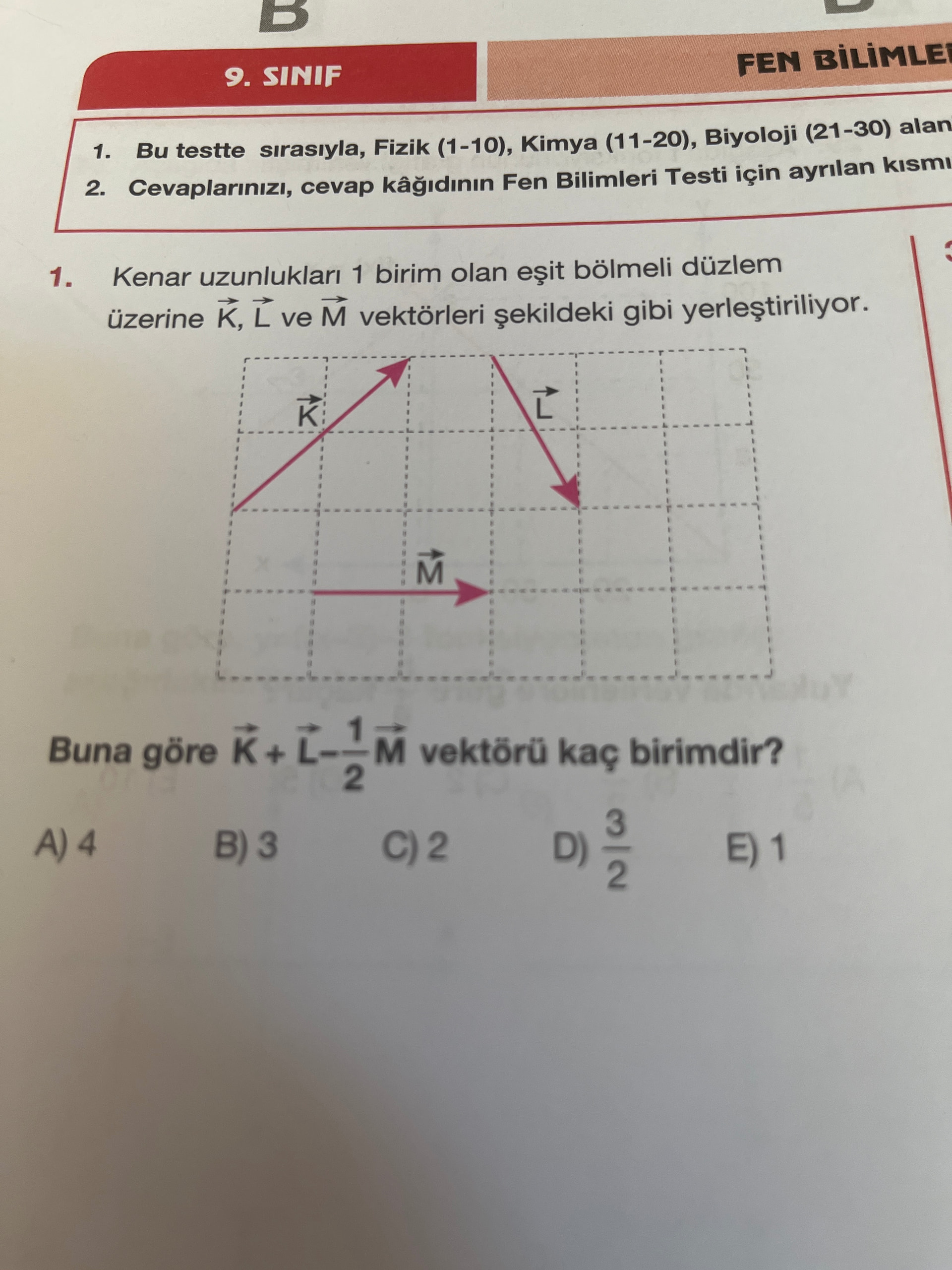 \vec K: Soldan sağa 3, aşağıdan yukarı 2 kare gitmiş.