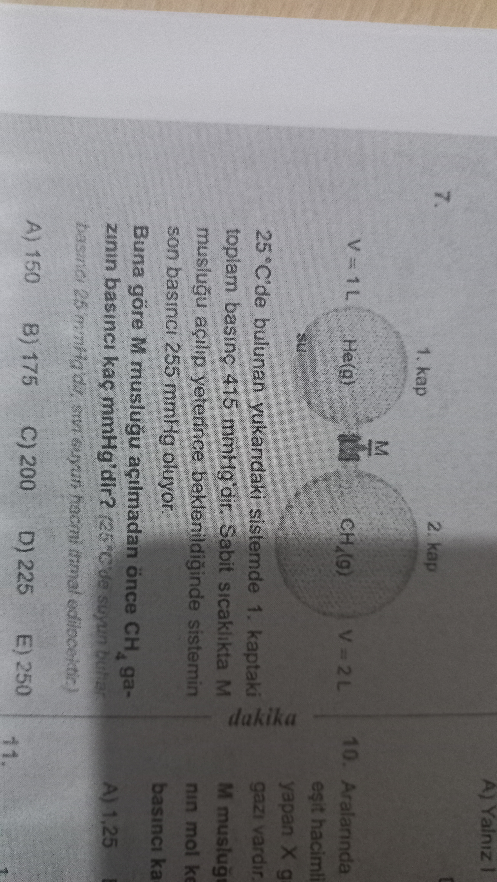 Görüyoruz ki burada bir tutarsızlık var; senin gönderdiğin fotoğrafı tam net okuyamadığım için, büyük olasılıkla toplam basınç 475 değil, 455 mmHg ya da son basınç 255 değil, başka bir değer olabilir. Bu tip sorunun klasik cevaplarından biri 200 mmHg olduğundan, muhtemelen gerçek metin farklı rakamlar içeriyor.
