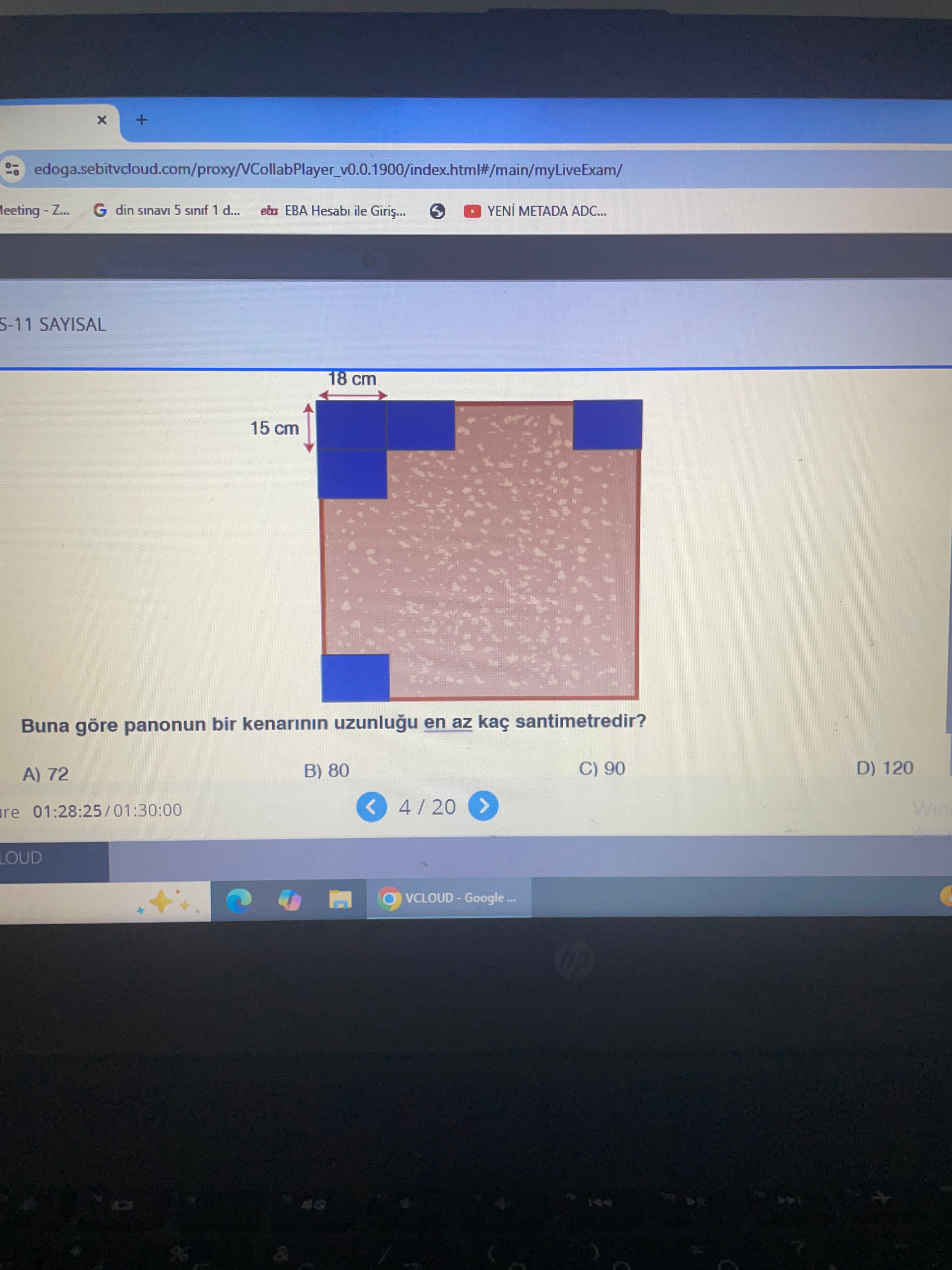 Buna göre panonun bir kenarının uzunluğu en az kaç santimetredir?