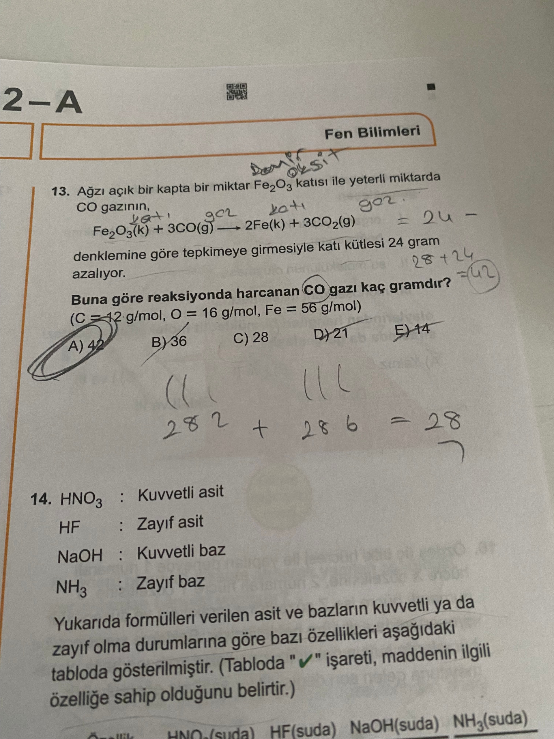 Buna göre tepkimede harcanan CO gazı kaç gramdır?