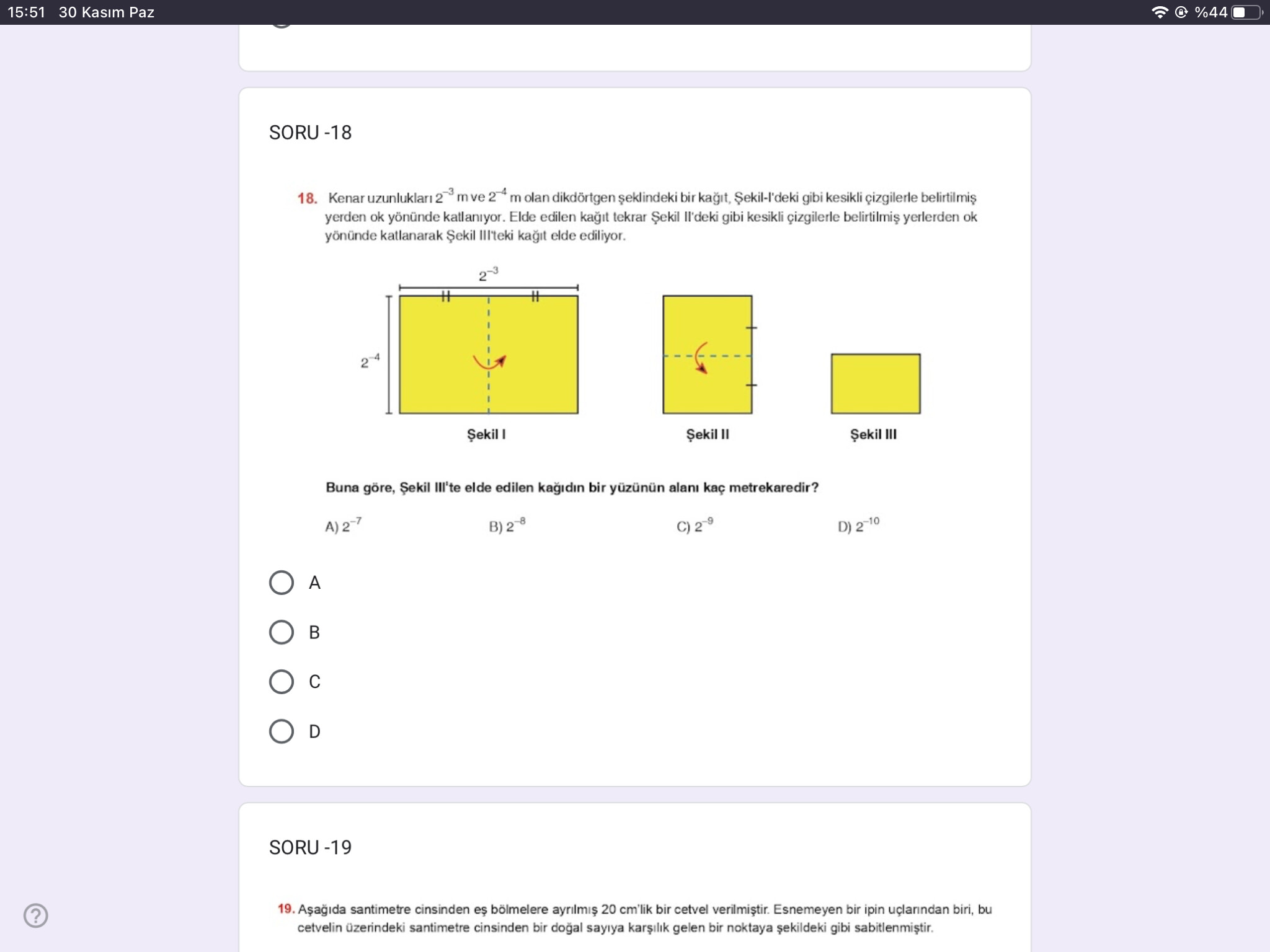 Buna göre, Şekil‑III’te elde edilen kağıdın bir yüzünün alanı kaç metrekaredir?