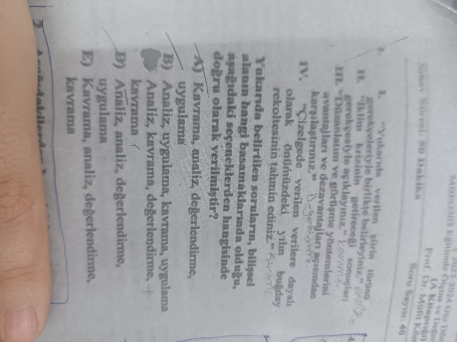 - A) Uygulama, analiz, değerlendirme, kavrama