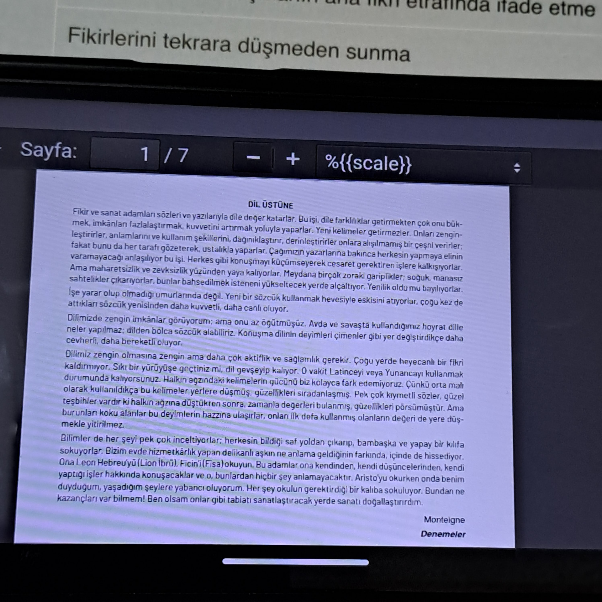 Dilimiz zengin olmasına zengin, ama ona daha çok etkinlik ve sağlamlık gerekir. Çoğu yerde heyecanlı bir fikri kaldıramıyor; bir yürüyüşe geçtiniz mi eli gevşeyip kalıyor. O vakit Latinceyi veya Yunancayı kullanmaya kalkıyoruz. Halkın ağzındaki kelimelerin gücünü biz kolayca fark edemiyoruz; çünkü onlar günlük kullanıla kullanıla kulaklarımızda eskimiş. Pek çok kimse güzel sözleri, güzel deyimleri sıradan sanıyor; zamanla değerleri bulanmış, güzellikleri pörsümüştür. Ama burnu koku alanlar bu deyimlerin hazına ulaşırlar; onları ilk defa kullanmış olanların sevinci gibi bir sevince kapılırlar.