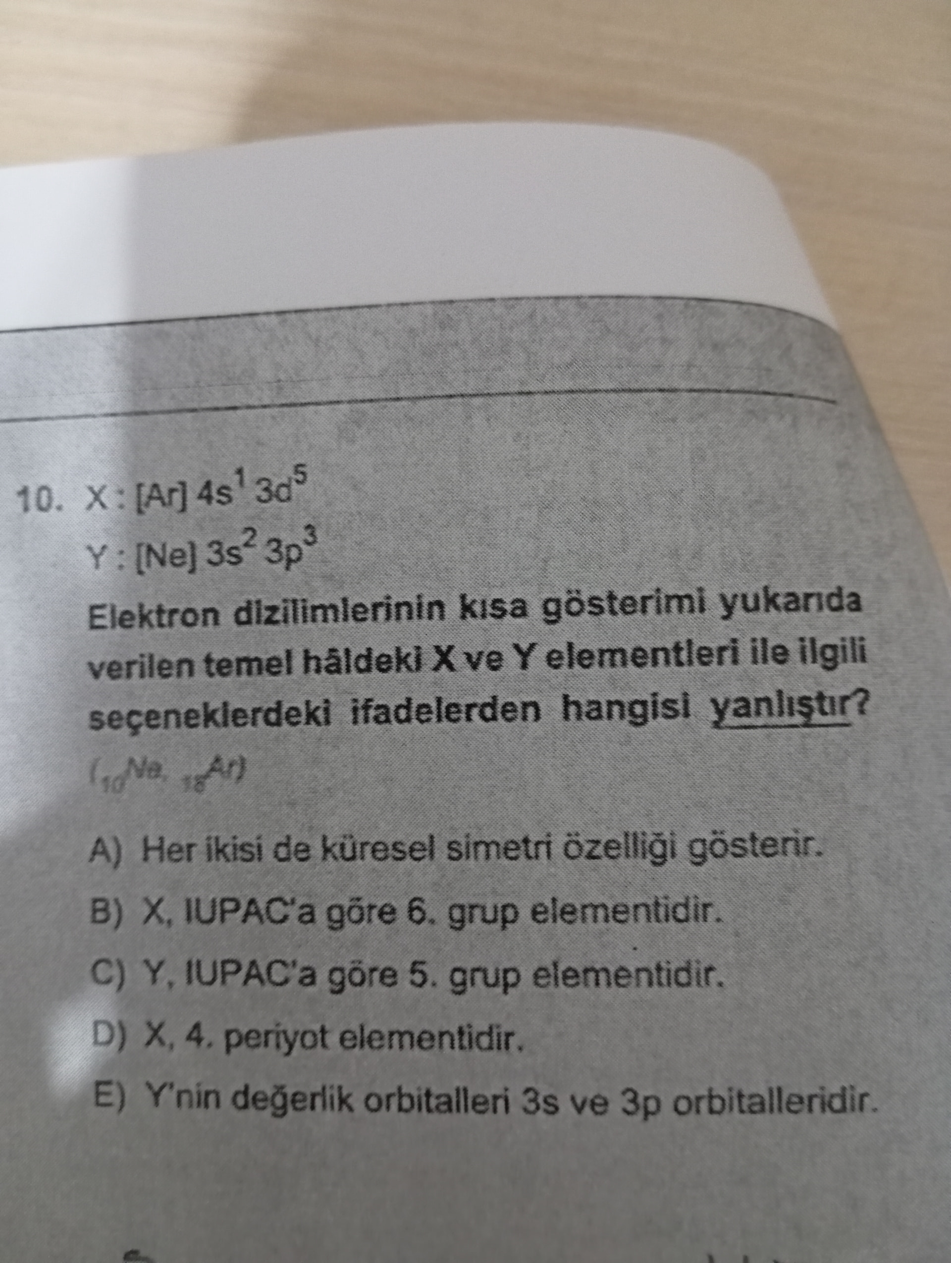 E) Y’nin değerlik orbitalleri 3s ve 3p orbitalleridir.