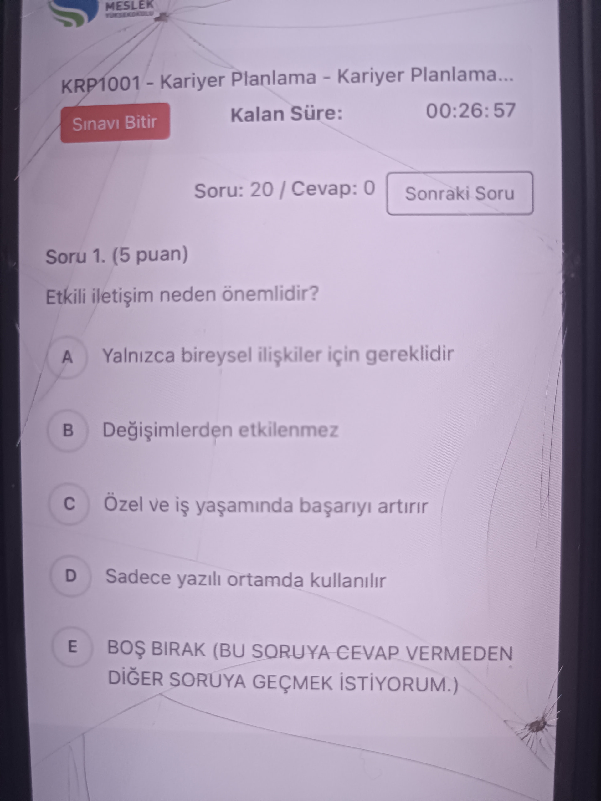 Soru: 20 / Cevap: 0 Sonraki Soru