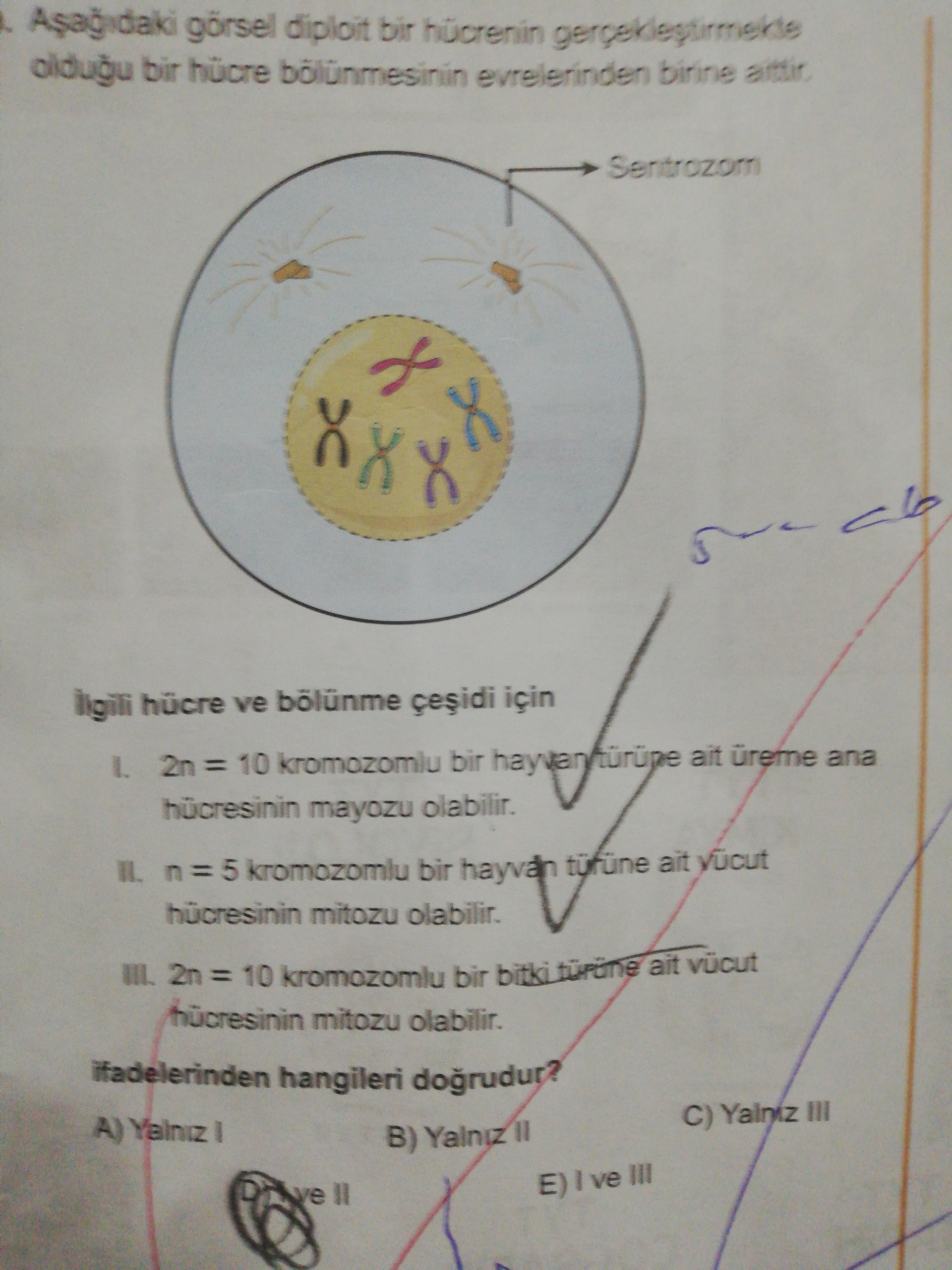 I. 2n = 10 kromozomlu bir hayvan türüne ait üreme ana hücresinin mayozu olabilir.