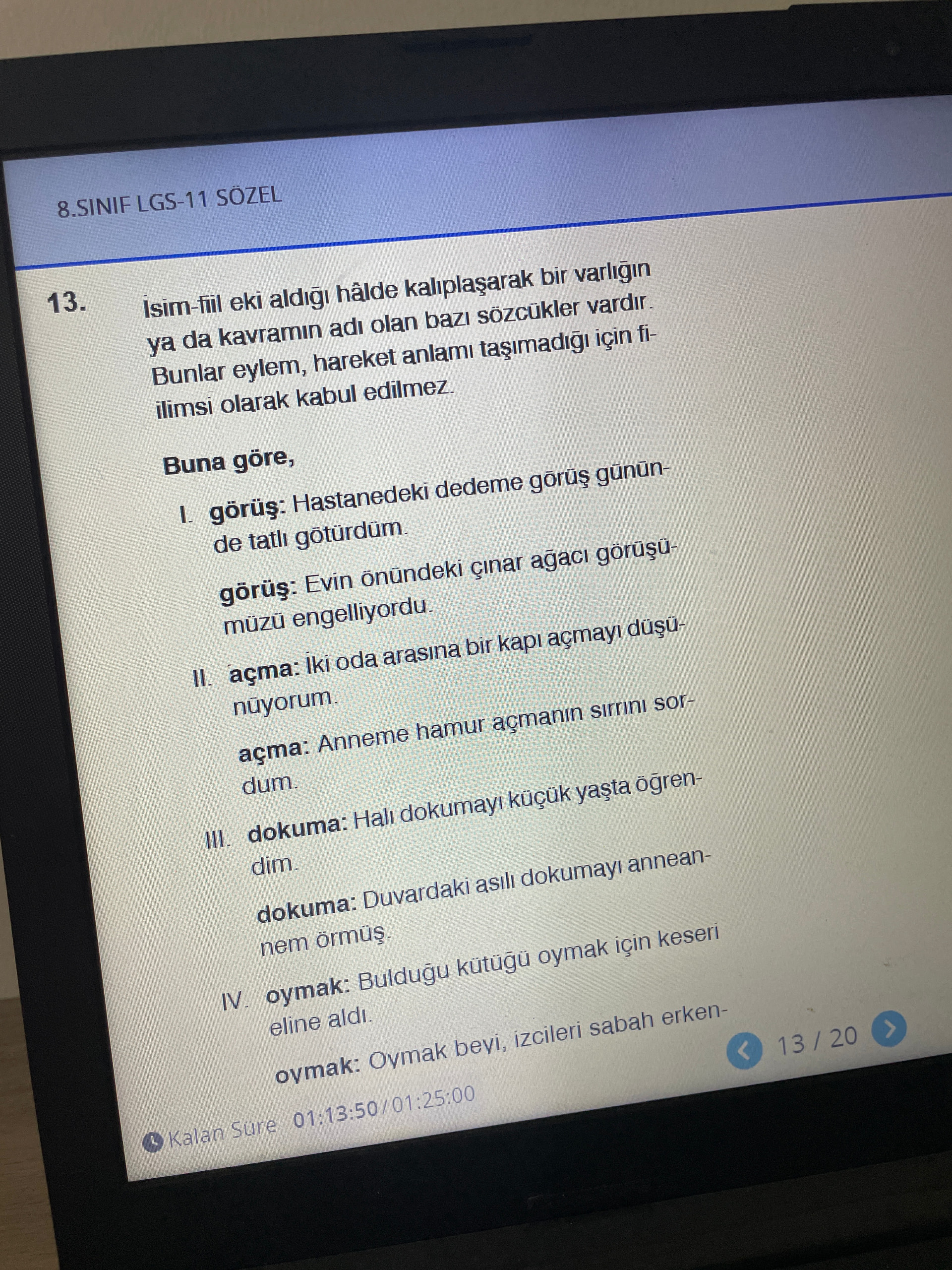 III. dokuma – Halı dokuma (sanat olarak kalıplaşmış), dokuma cümleleri isimleşmiş.