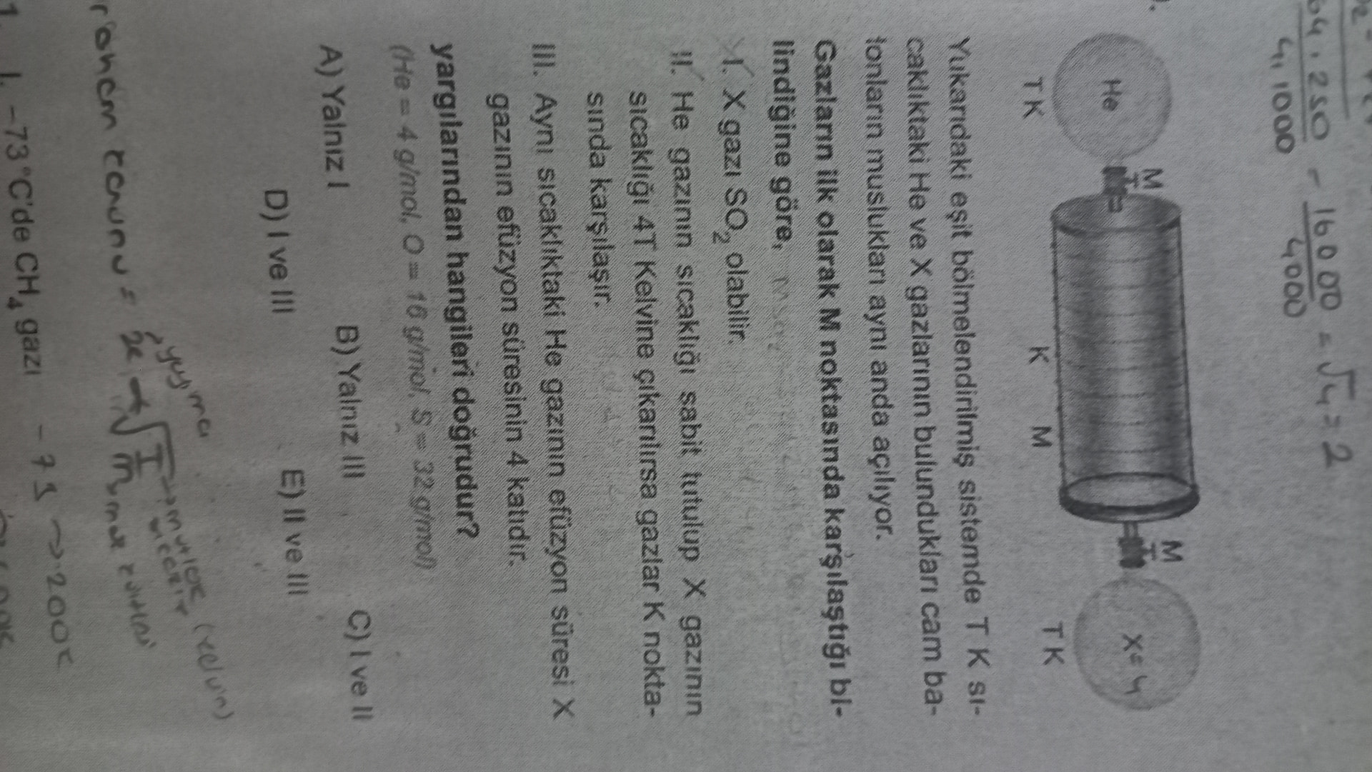III. “Aynı sıcaklıkta He gazının efüzyon süresi, X gazının efüzyon süresinin 4 katıdır.”