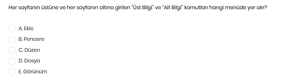 Her sayfanın üstüne ve her sayfanın altına girilen “Üst Bilgi” ve “Alt Bilgi” komutları hangi menüde yer alır?