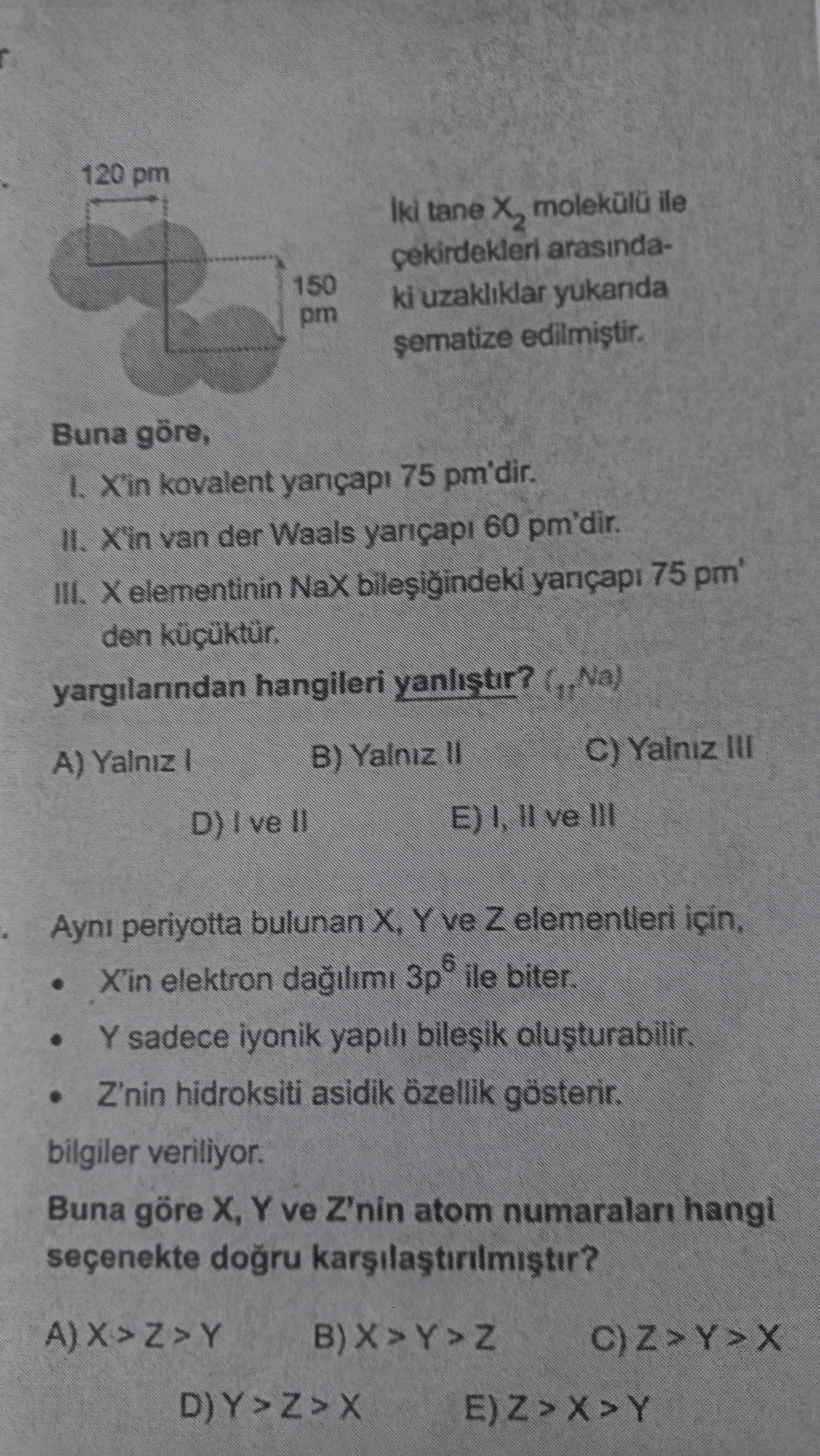 III. X elementinin NaX bileşiğindeki yarıçapı 75 pm’den küçüktür.