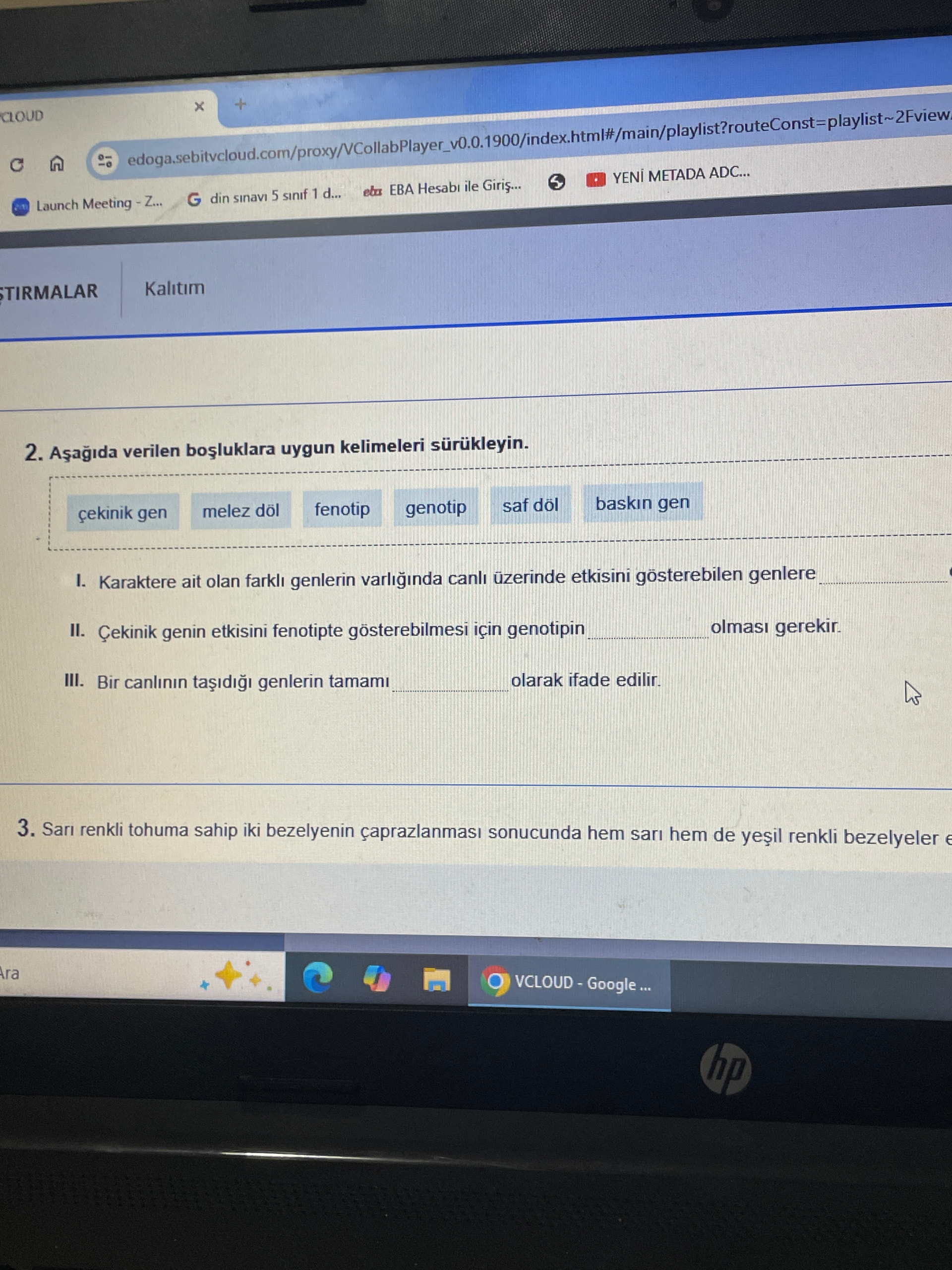 II. Çekinik genin etkisini fenotipte gösterebilmesi için genotipin ______ olması gerekir.