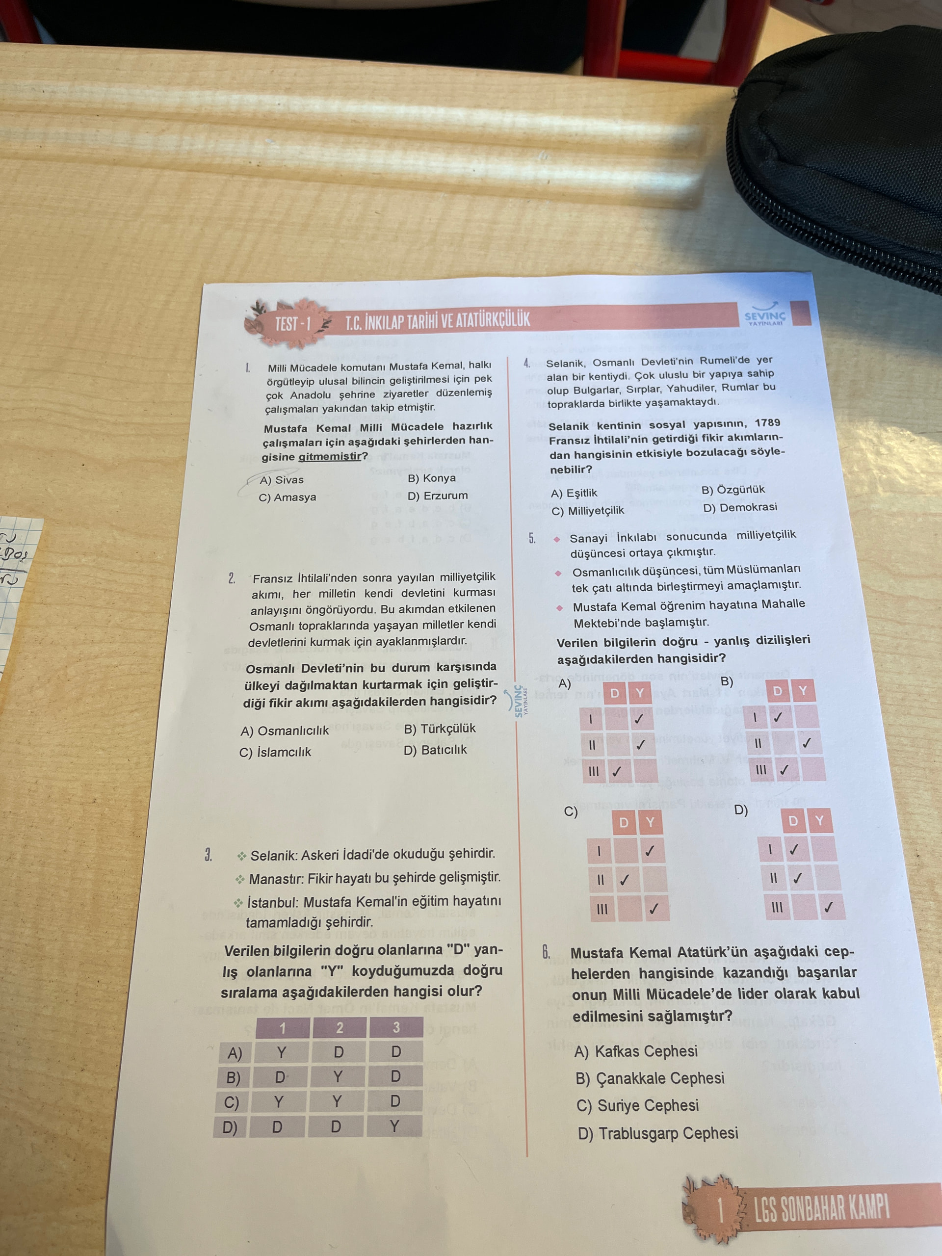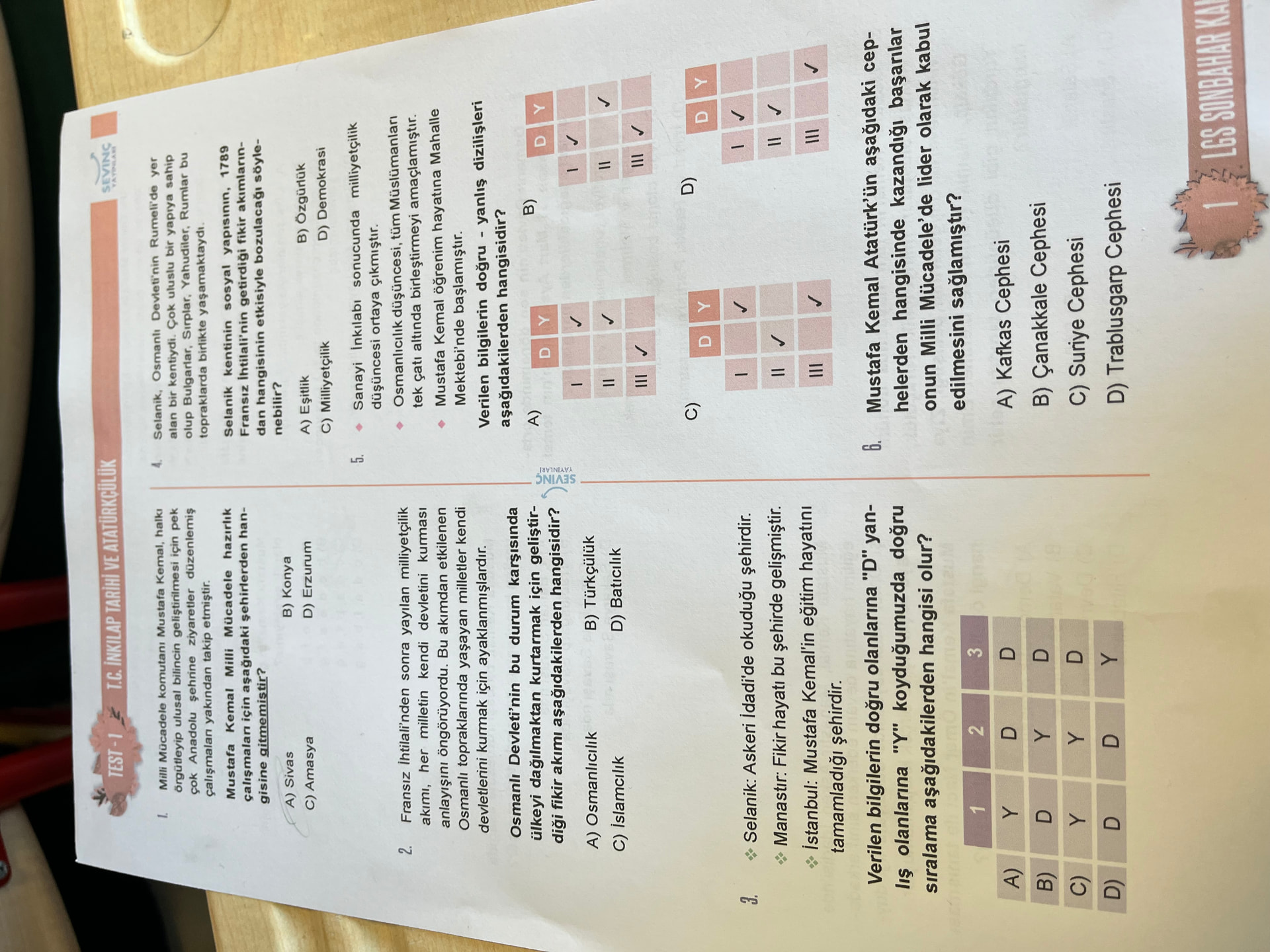 Kısa cevap: Görüntü öncekiye göre daha net, ama sayfa hâlâ uzaktan ve küçük; istersen şu görüntüyle tahmini cevap anahtarı çıkarayım ya da dikey, yakın çekim bir fotoğraf atarsan %100 doğru anahtarı veririm. Hangi yolu tercih ediyorsun?