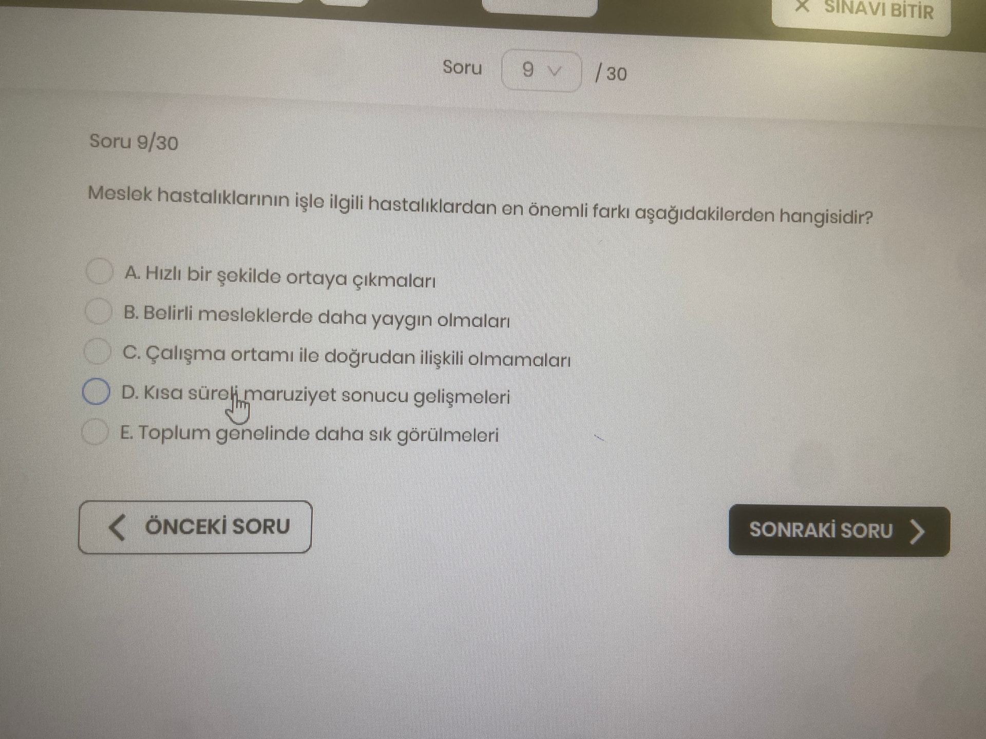 - D. Kısa süreli maruziyet sonucu gelişmeleri