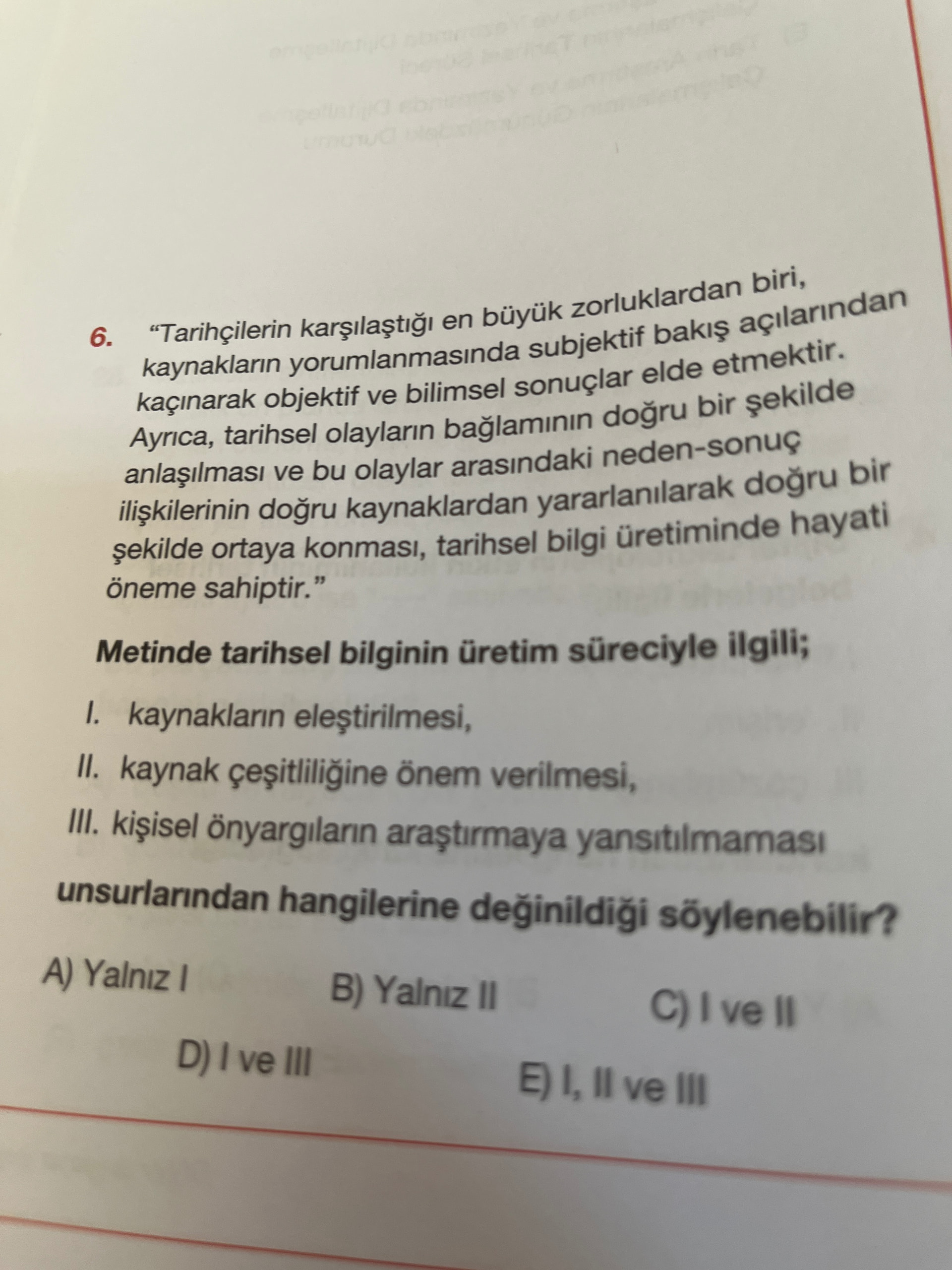 Metne en net dayanaklı olanlar ise I ve III gibi görünse de, testlerde “kaynak çeşitliliği” özellikle “farklı türde, çok sayıda kaynak kullanılması” şeklinde tanımlandığı için, sadece “doğru kaynaklardan yararlanmak” çoğunlukla çeşitlilik sayılmaz.