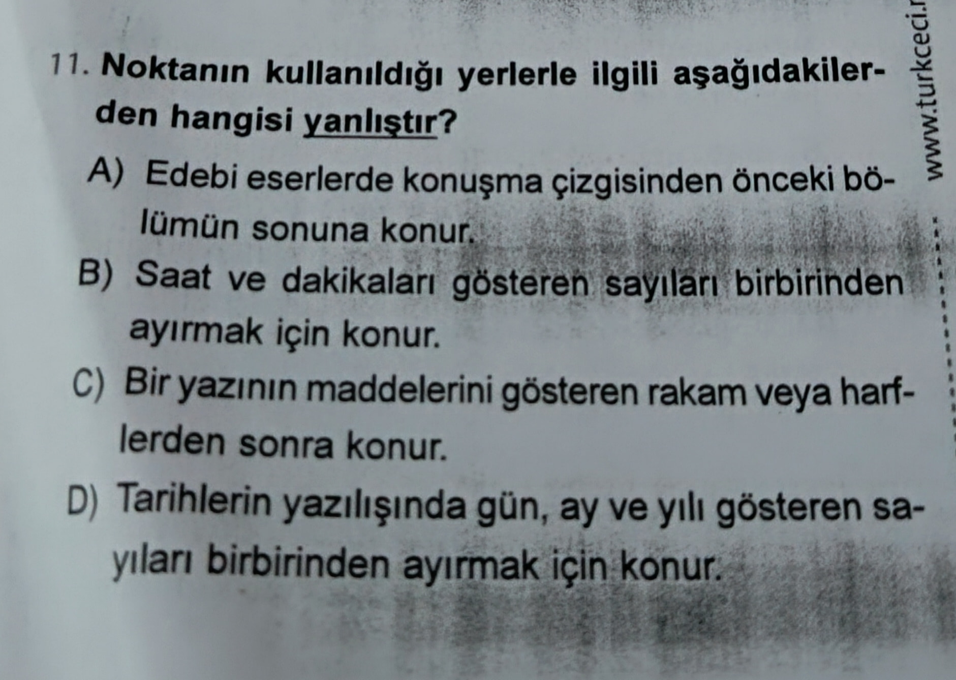 “Noktanın kullanıldığı yerlerle ilgili aşağıdakilerden hangisi yanlıştır?”