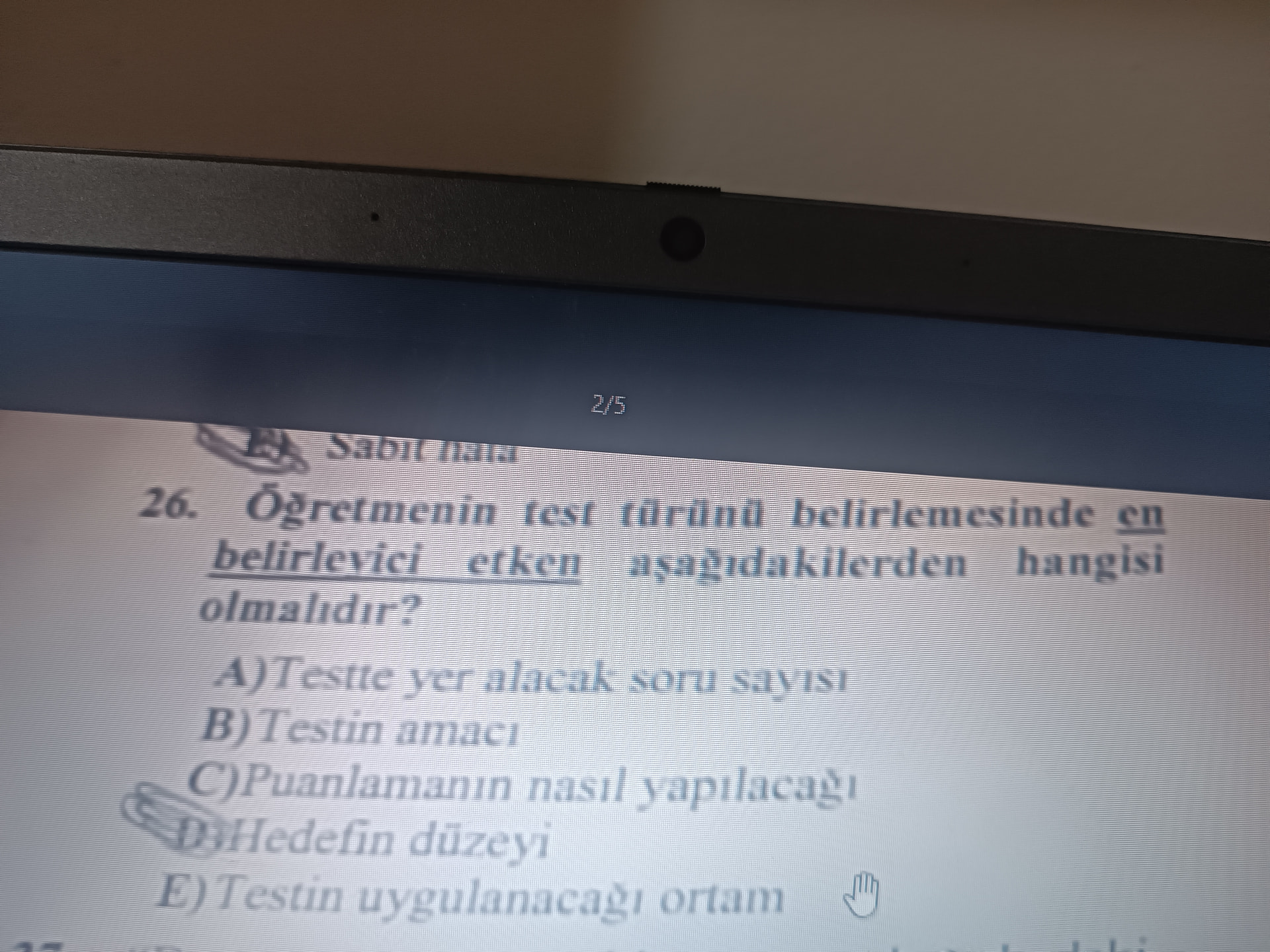 - Öğretmenin test türünü belirlemesinde en belirleyici etken aşağıdakilerden hangisi olmalıdır?