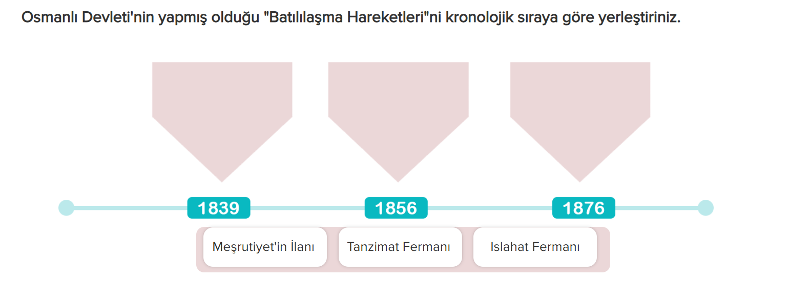Osmanlı Devleti’nin yapmış olduğu "Batılılaşma Hareketleri"ni kronolojik sıraya göre yerleştiriniz.